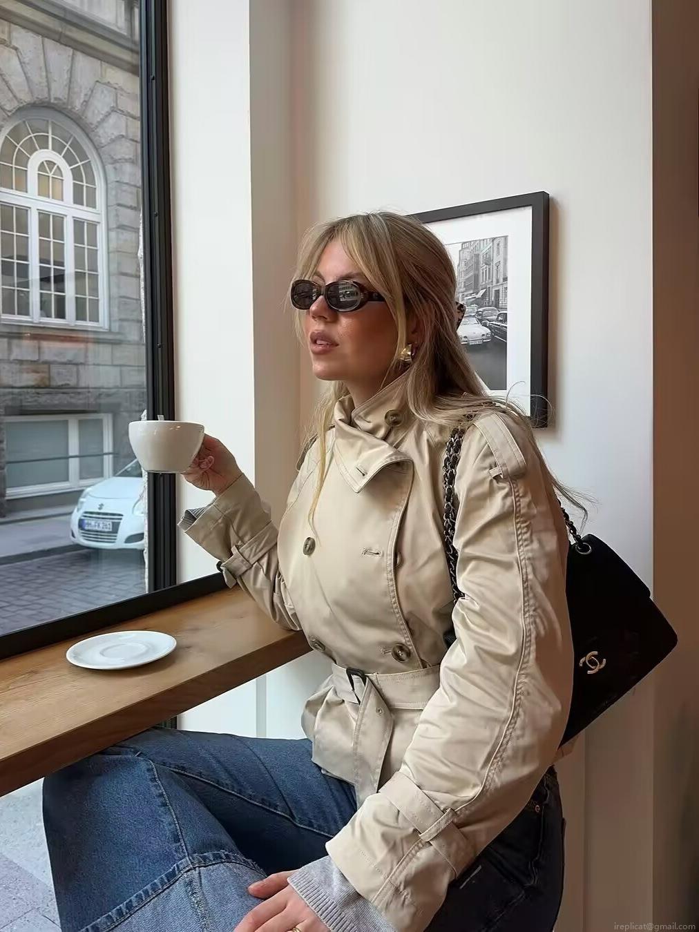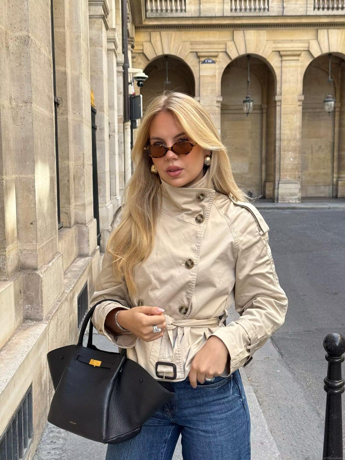 • Women's Short Double-Breasted Trench Coat Jacket With Belt Solid Color Lapel Long Sleeve Windbreaker Outerwear For Spring Autumn Streetwear Fashion
