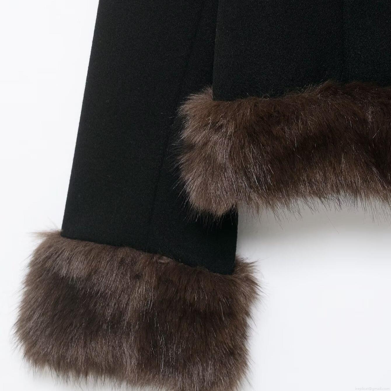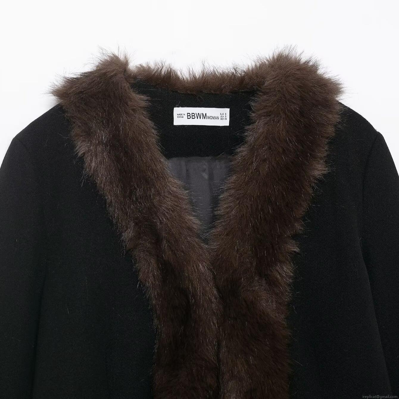 Waist shaping, Color Blocking, Buttons, Fur Patchwork