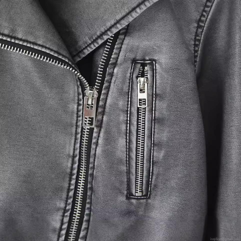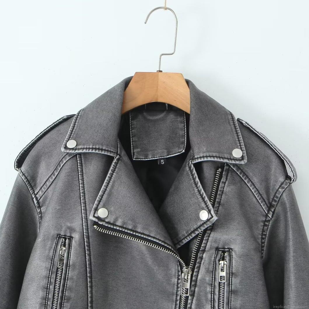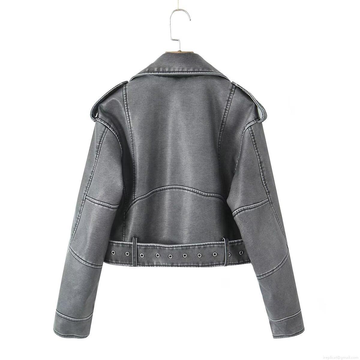 Solid Color, Belt Decoration, Metal Zipper, Large Lapel, Motorcycle Jacket, Vintage Washed And Distressed