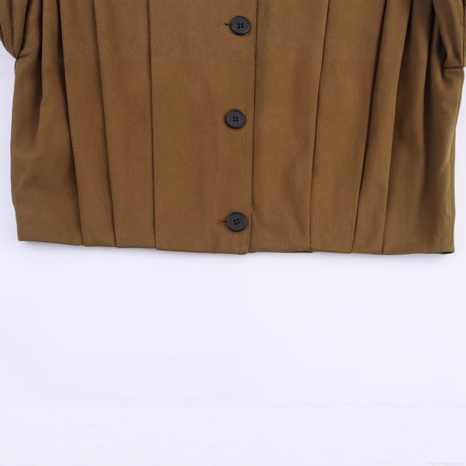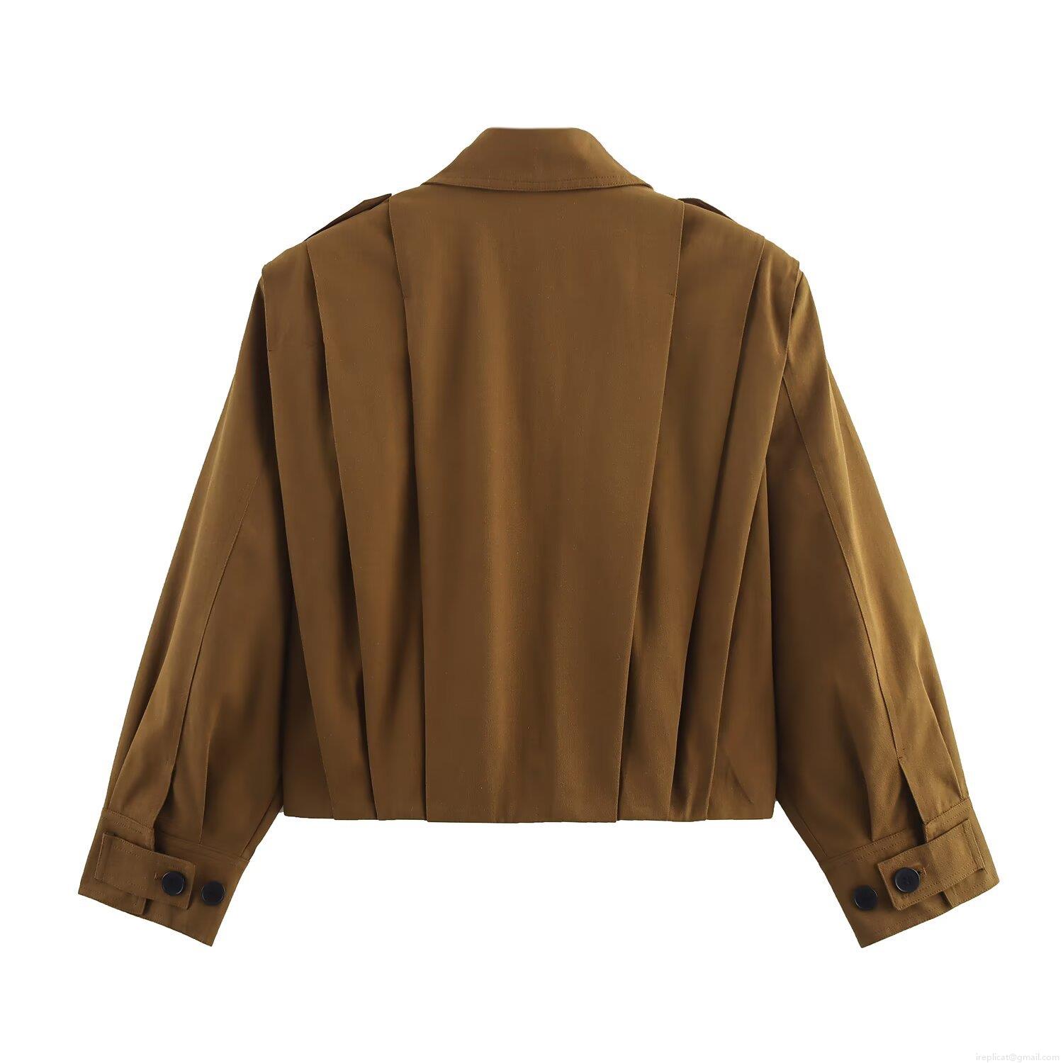 • Women's Short Jacket European Style Lapel Long Sleeve Single Breasted Pleated Outerwear With Shoulder Straps Solid Color Polyester Loose Fit Coat For Autumn Streetwear