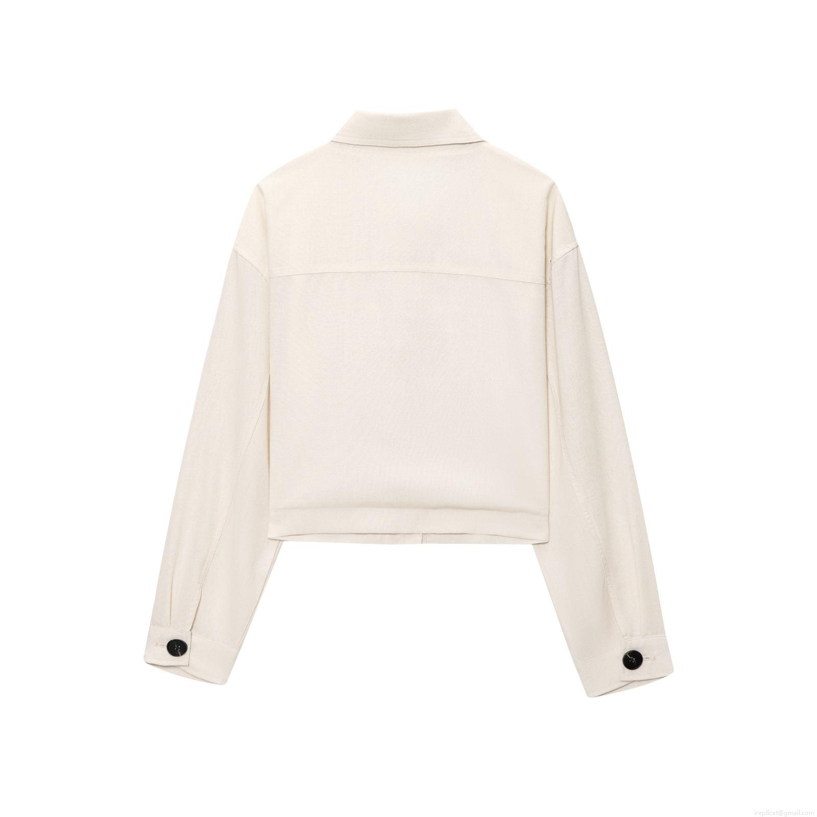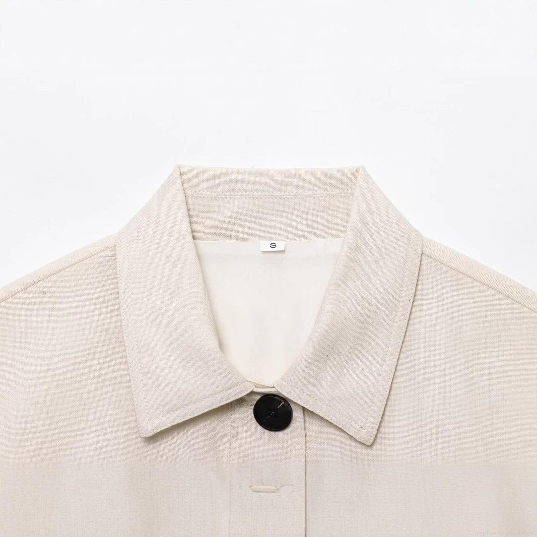 Women's Short Jacket Lapel Long Sleeve Single Breasted Coat Polyester Blended Casual Streetwear Outerwear With Pockets Cream White Autumn Fashion Trendy Loose Fit Lady Top