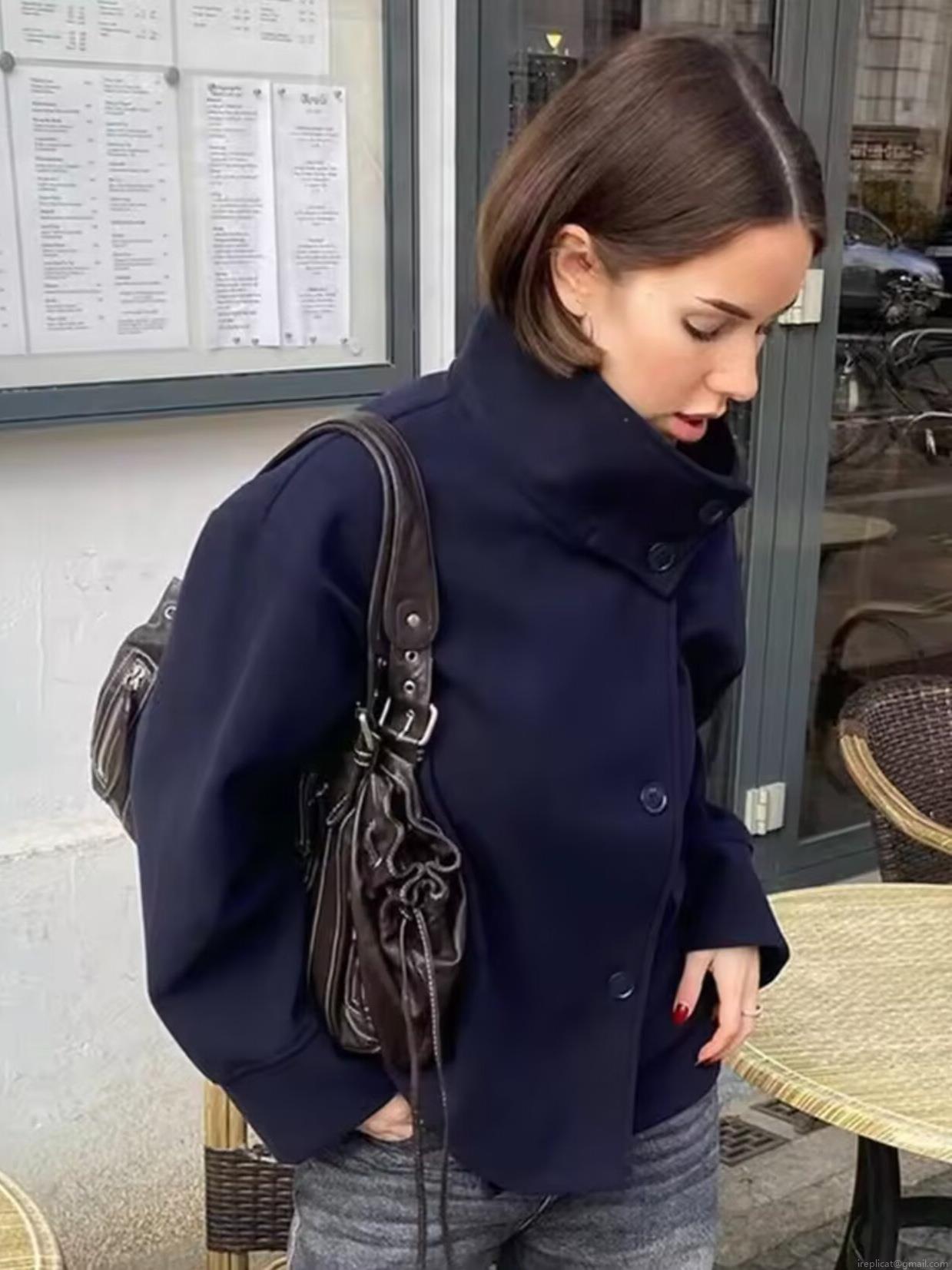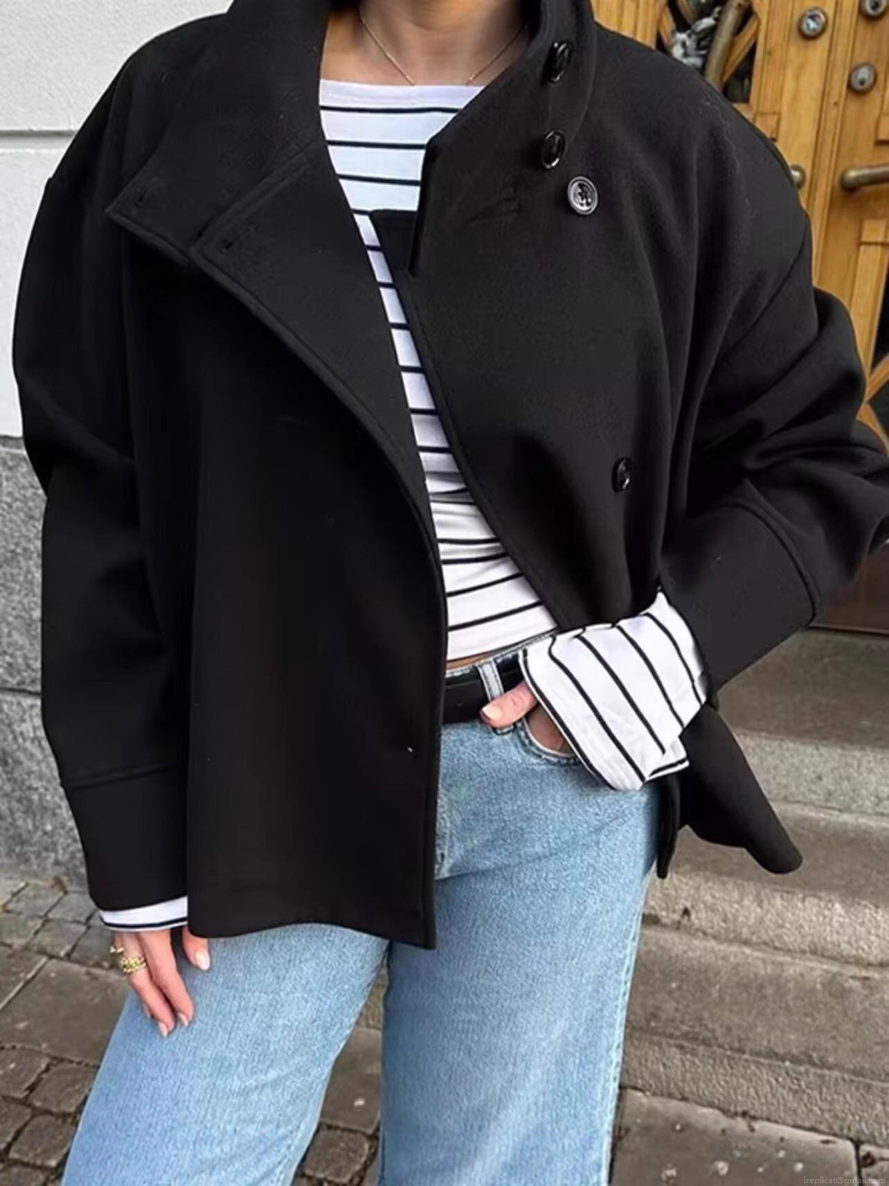 • Women's Short Jacket Stand Collar Single Breasted Polyester Wool Like Coat Outerwear Loose Fit Casual Street Style Fashion Women Autumn Clothing