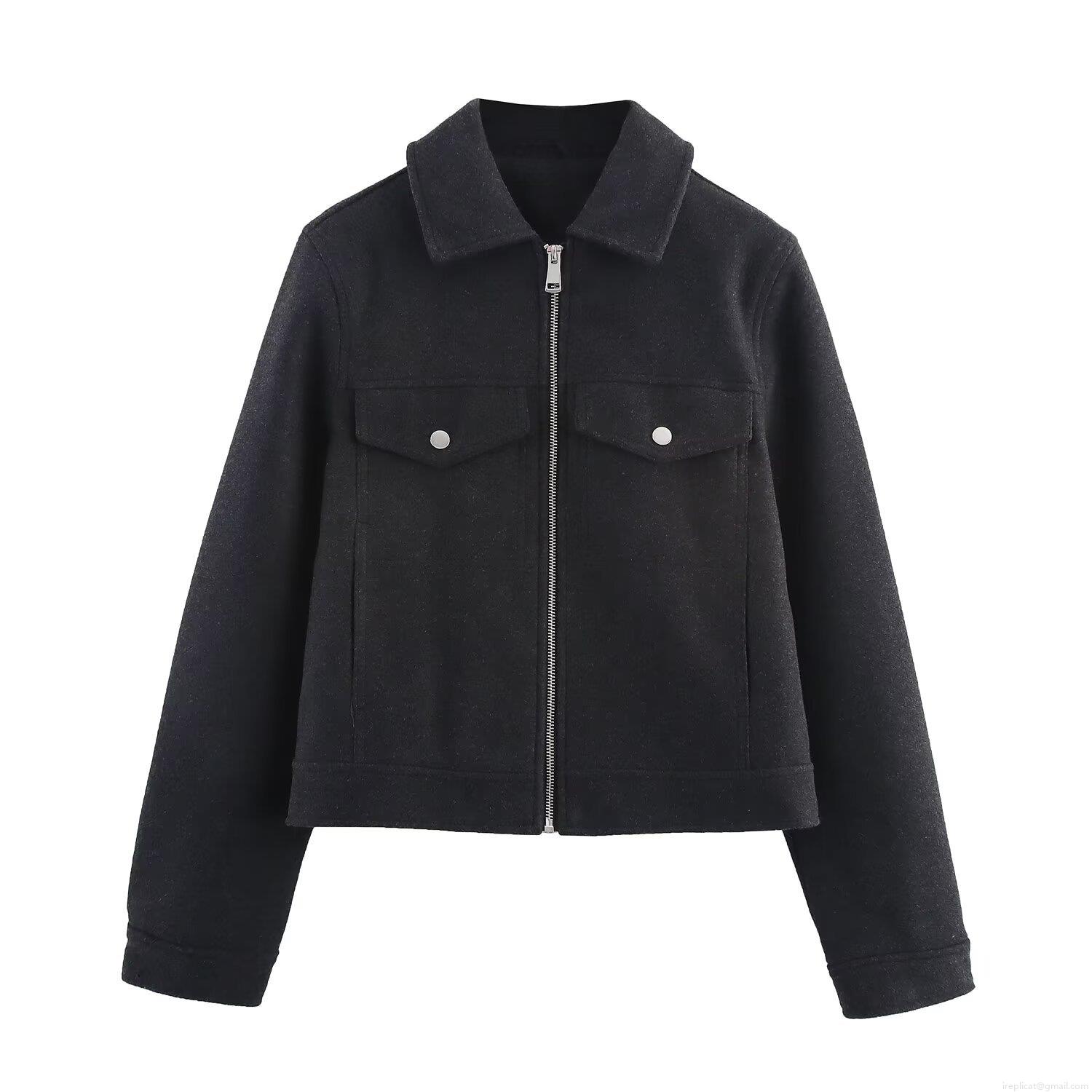 • Women's Short Jacket Woolen Feel Lapel Zipper Outerwear With Pockets Solid Color Casual Streetwear Coat For Autumn Winter