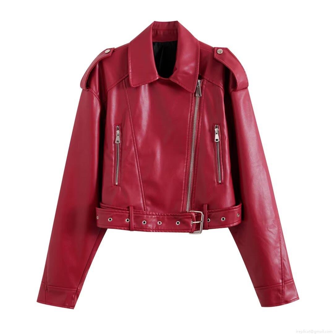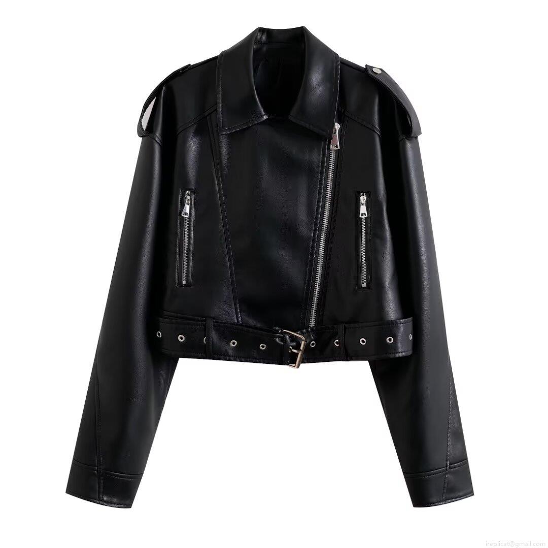 • Women's Short Moto Faux Leather Jacket Punk Streetwear Biker PU Coat With Metal Zippers And Adjustable Belt Winter Autumn Lapel Outerwear