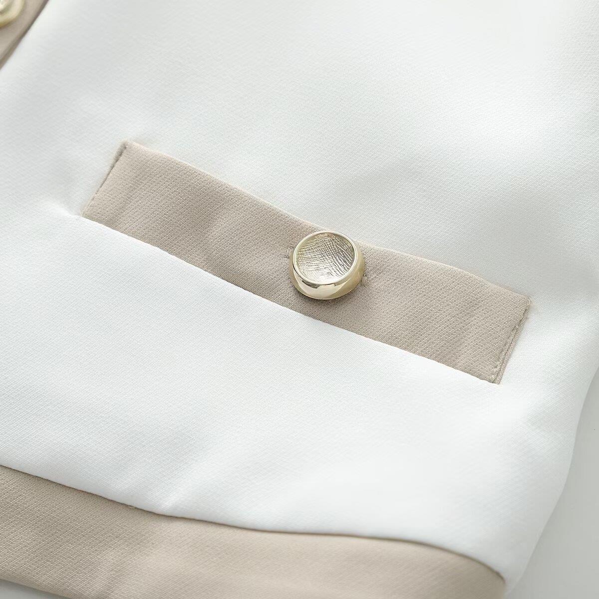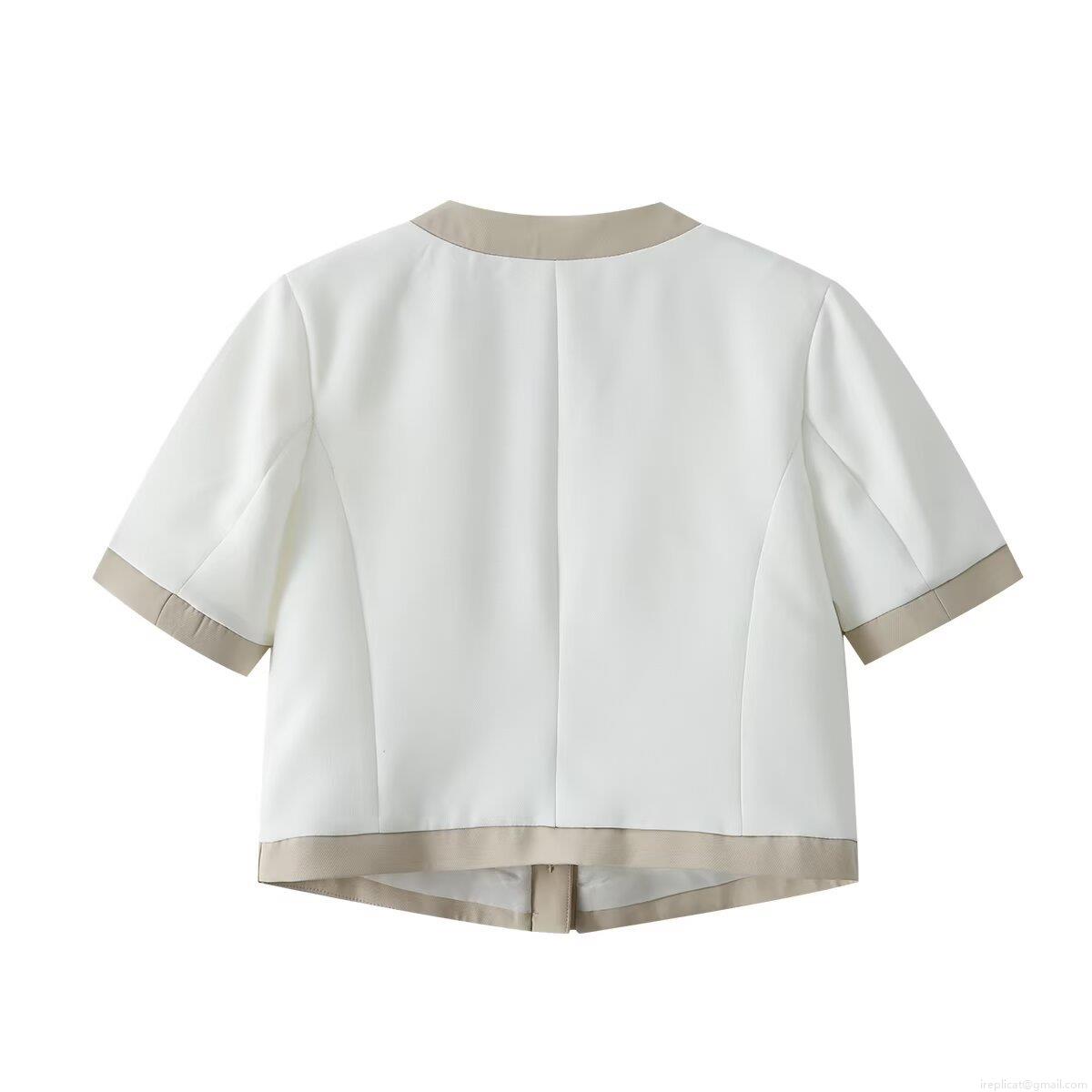 • Women's Short Sleeve Jacket Contrast Trim Round Neck Single Breasted Crop Coat Polyester Splicing Elegant Tweed Style Outerwear For Ladies Autumn Fashion