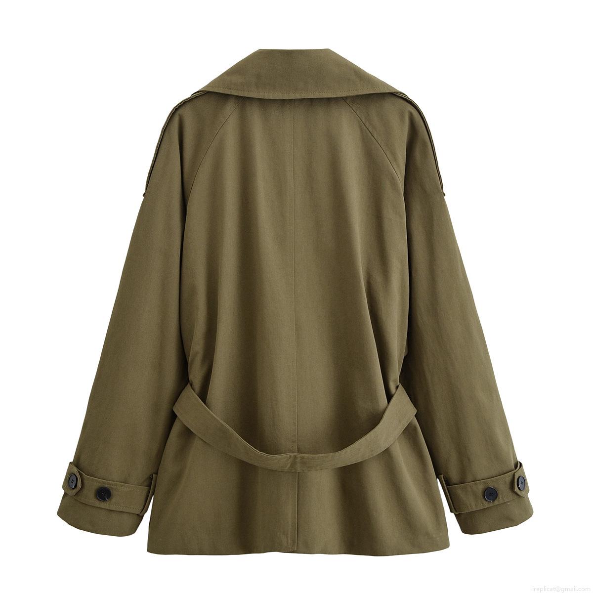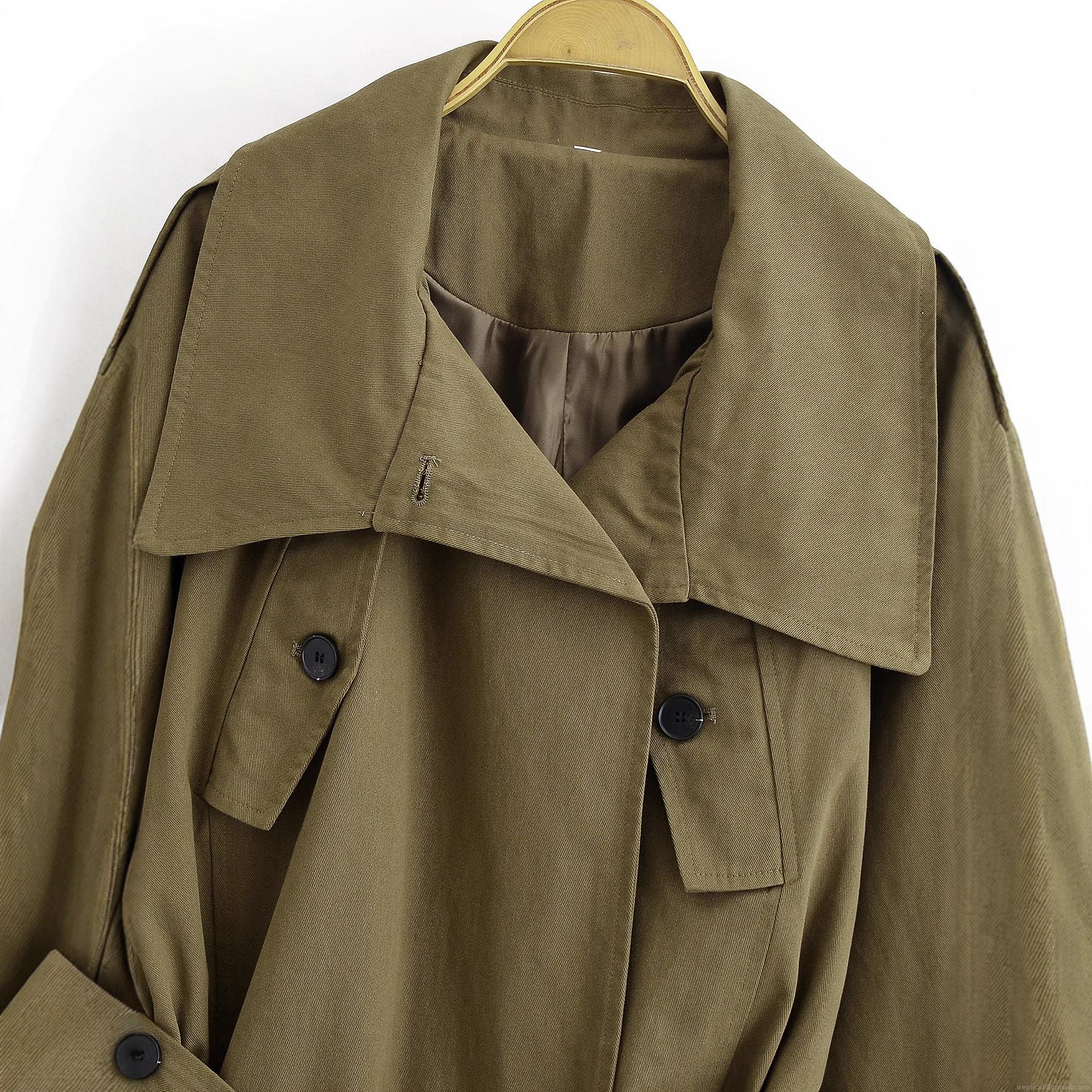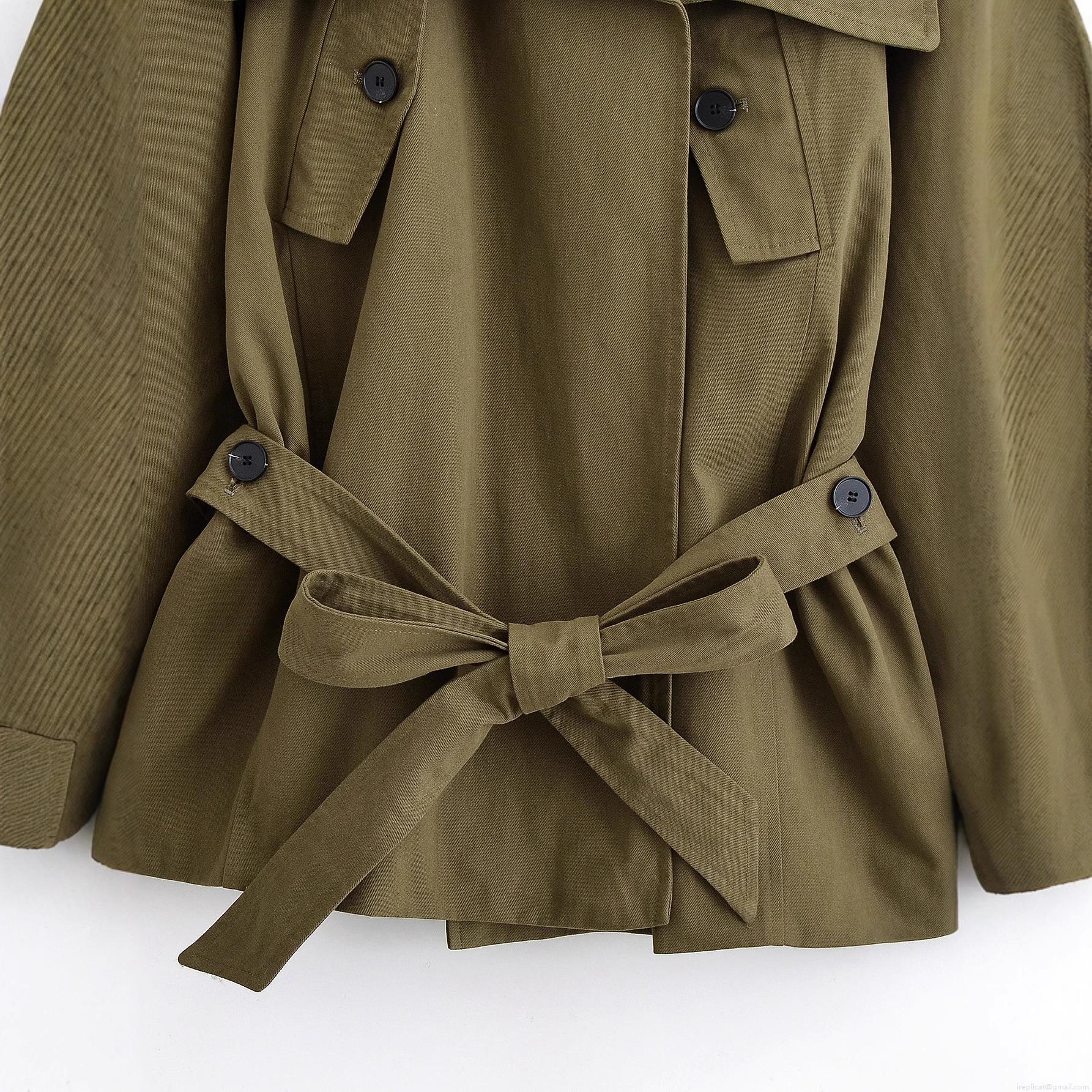• Women's Short Trench Coat 100% Polyester Sailor Collar Double Breasted Jacket With Waist Belt Casual Loose Army Green Outwear For Women