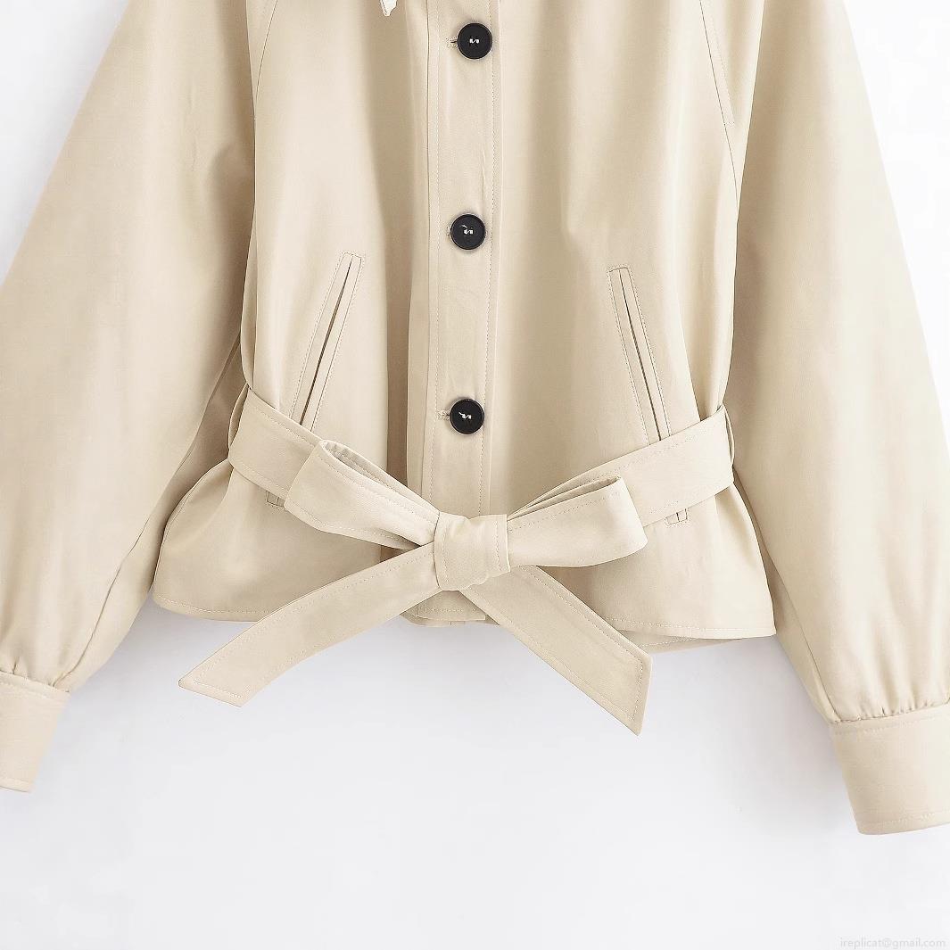 • Women's Short Trench Coat Elegant Lapel Single Breasted Jacket With Belt Solid Color Polyester Spring Autumn Windbreaker Outerwear For Lady