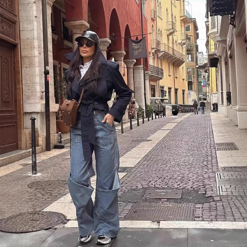 • Women's Short Trench Coat Jacket 100% Polyester Double Breasted With Belt Lapel Long Sleeve Outerwear For Office Daily Elegant Windbreaker