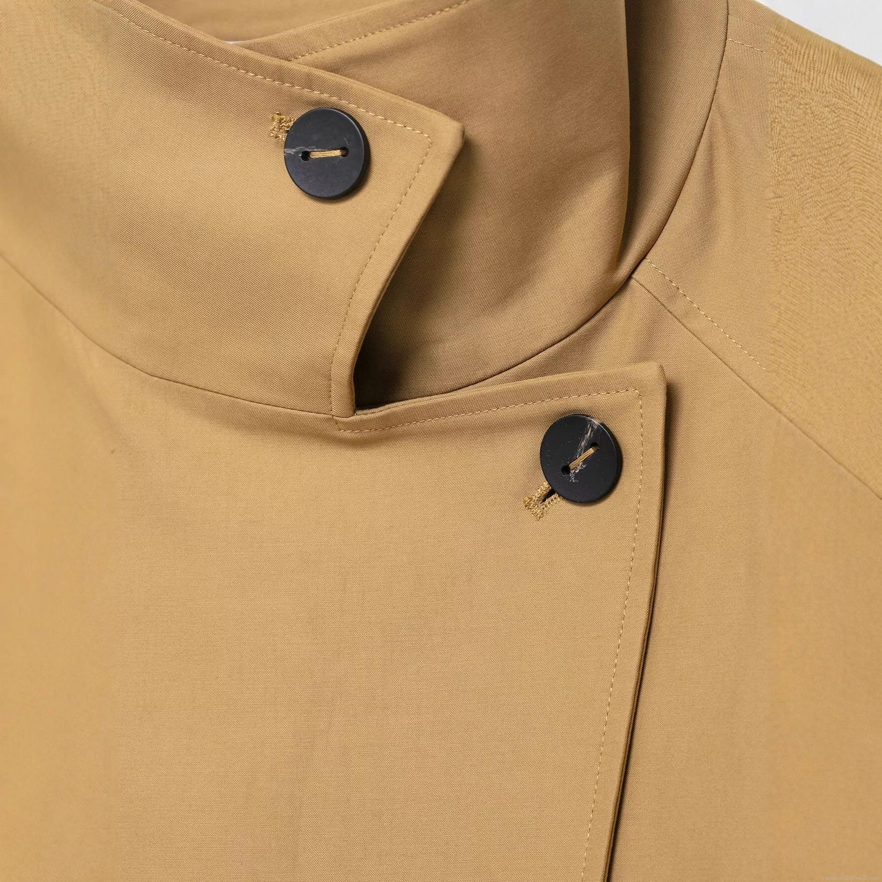 • Women's Short Trench Coat Stand Collar Asymmetric Single Breasted Jacket Khaki Solid Color Long Sleeve Casual Streetwear Windbreaker Outwear For Women