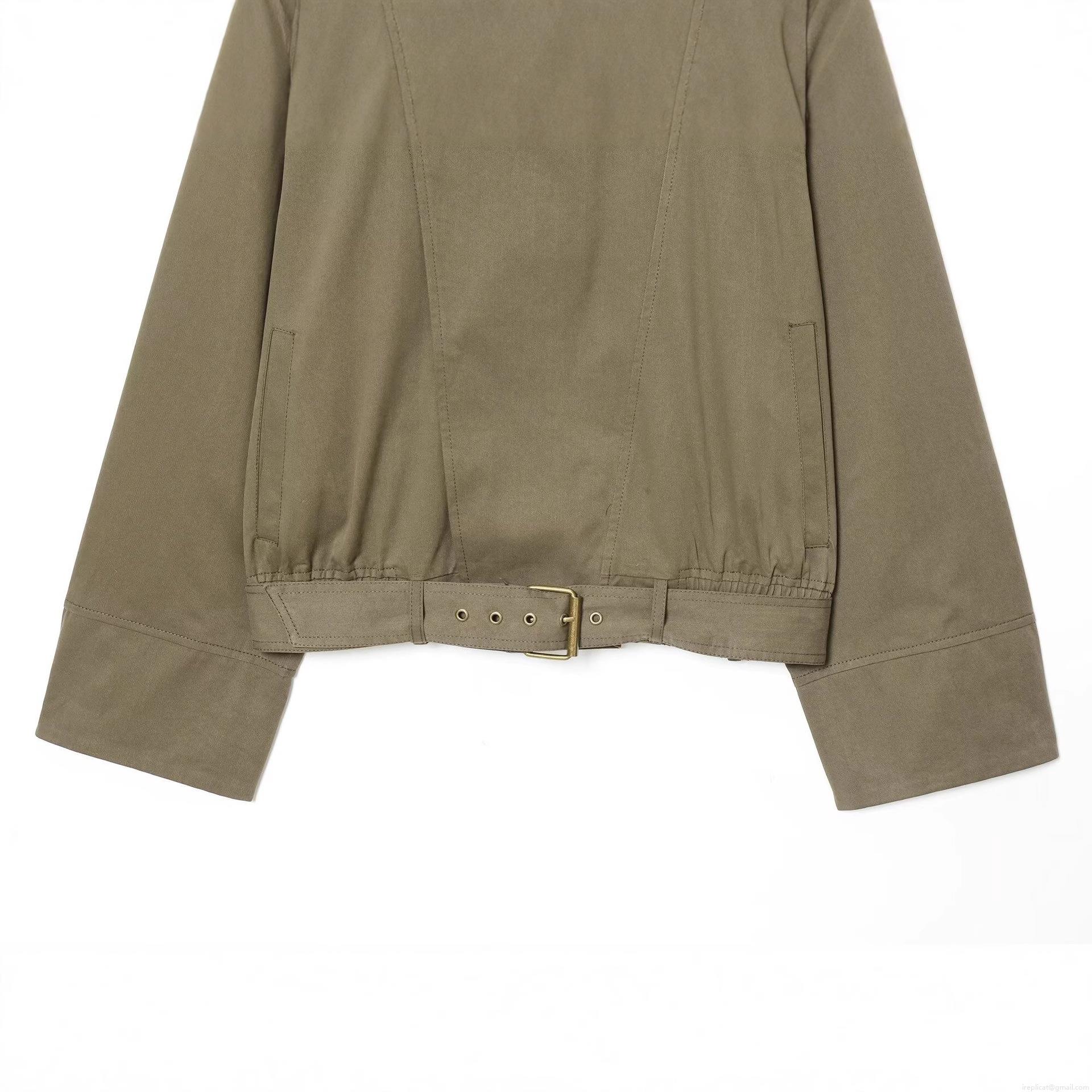 Women's Short Trench Coat Utility Workwear Cotton Blend Stand Collar Belted Jacket Casual Solid Olive Green Khaki Outerwear Top Women Clothing
