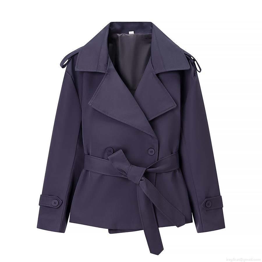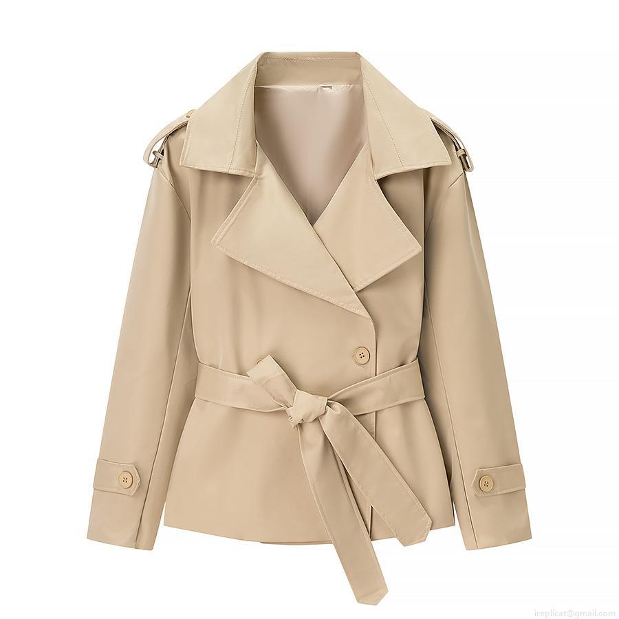 • Women's Short Trench Jacket With Belt Double Breasted Lapel Windbreaker Coat Casual Loose Streetwear For Autumn Spring Lady Fashion Solid Color Outerwear