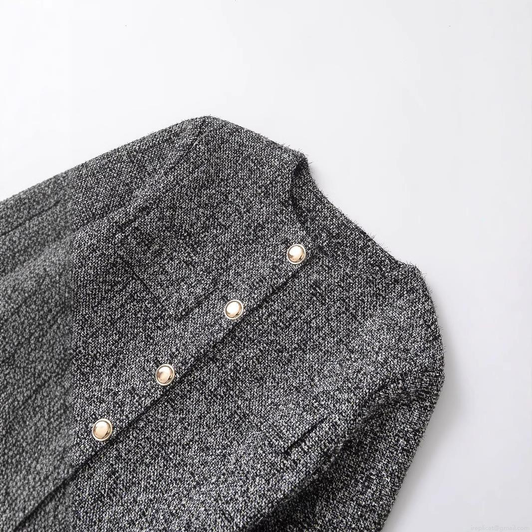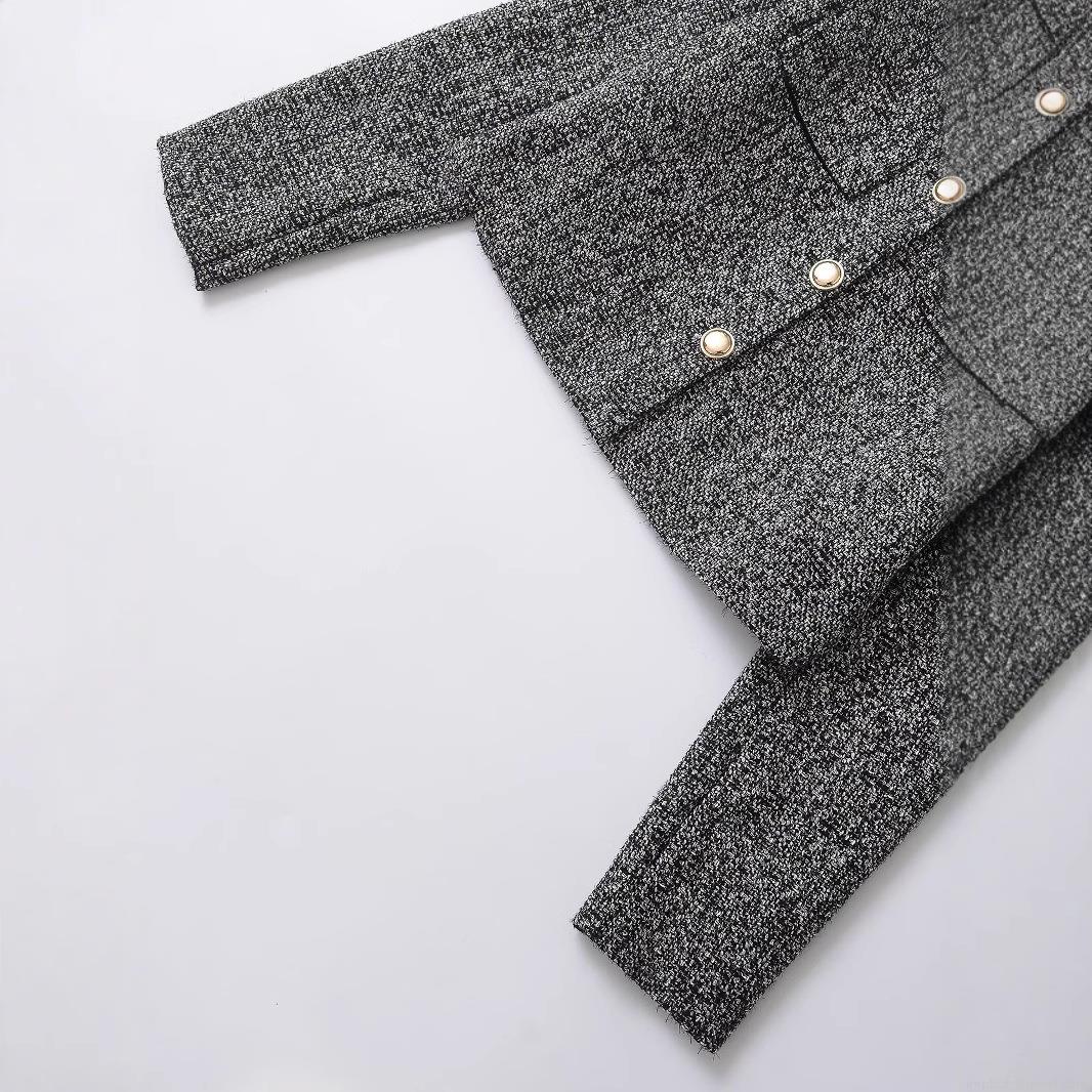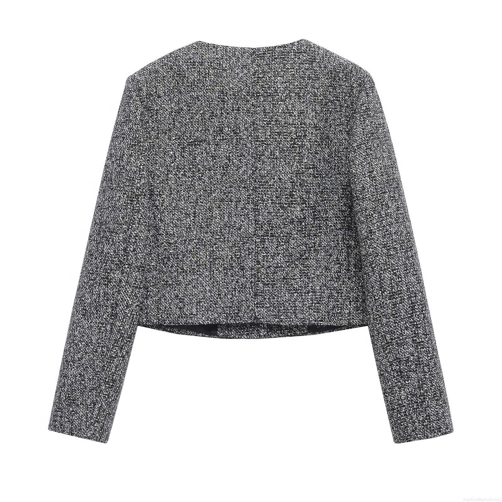 • Women's Short Tweed Jacket Long Sleeve Round Neck Polyester Outerwear With Gold Buttons Casual Streetwear Cropped Top For Women Grey