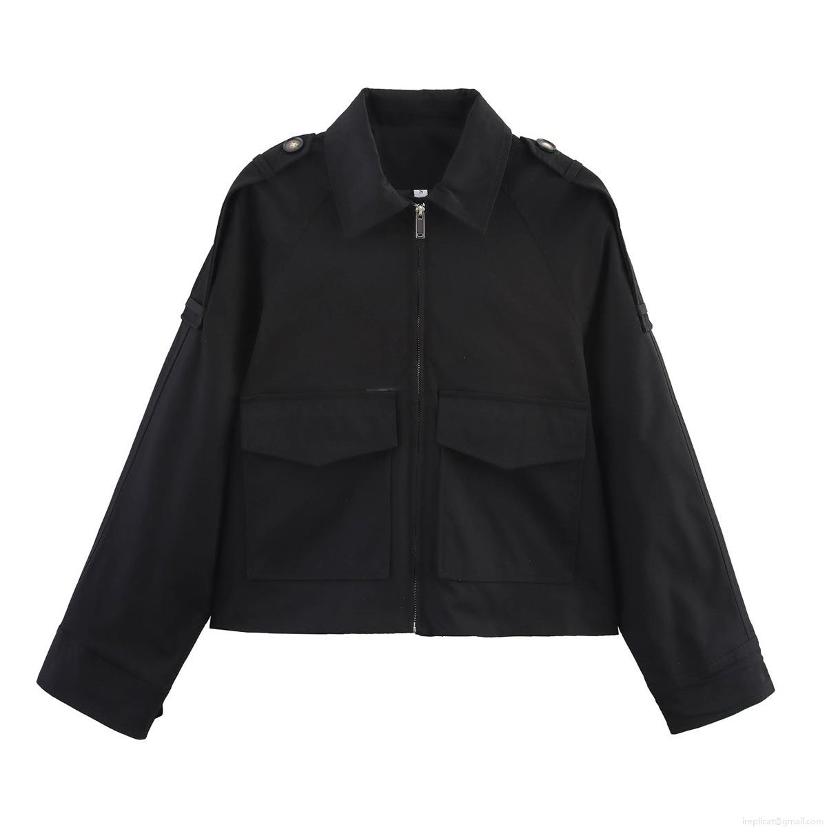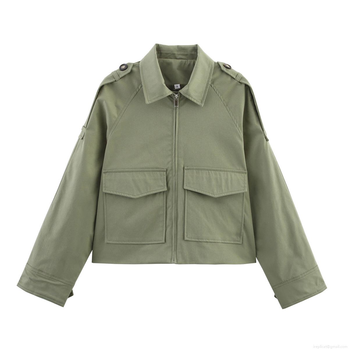 • Women's Short Utility Jacket 100% Polyester Zipper Windbreaker Outerwear With Flap Pockets And Epaulettes Military Style Casual Streetwear Coat