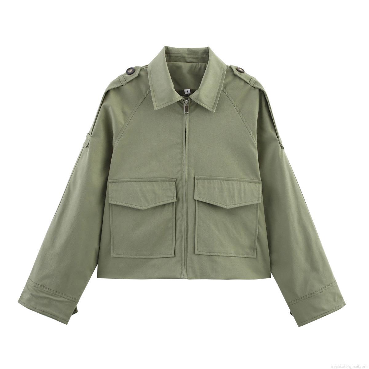• Women's Short Utility Trench Jacket Casual Solid Color Turn-down Collar Long Sleeve Zipper Windbreaker Coat With Epaulettes And Pockets Streetwear Fashion Outwear