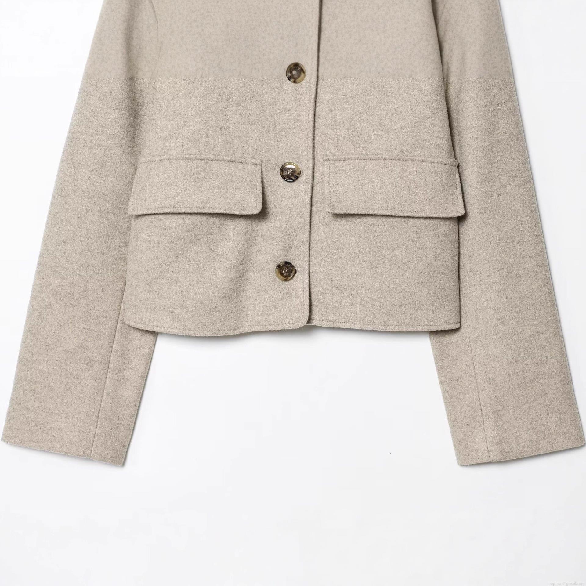 Women's Short Woolen Blend Jacket Lapel Long Sleeve Single Breasted Coat With Pockets Casual Streetwear Autumn Winter Outerwear For Ladies