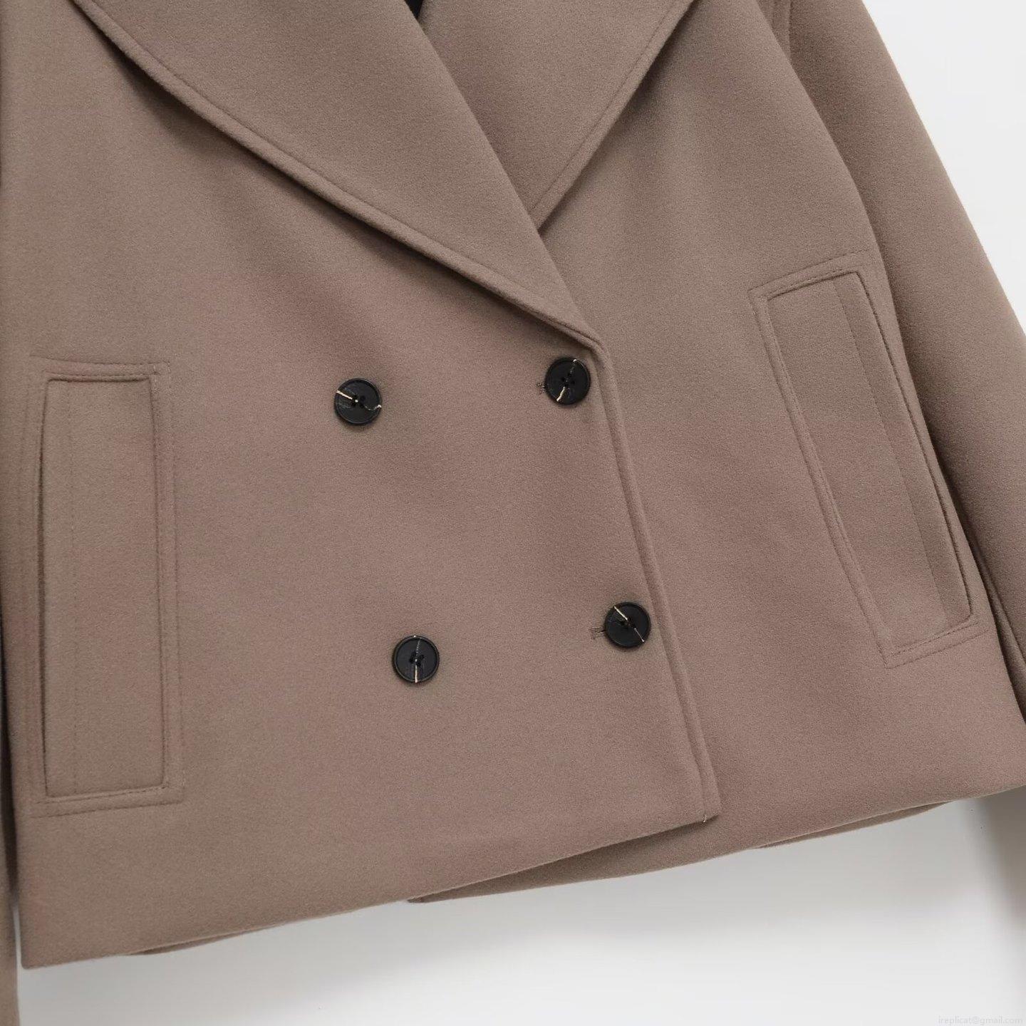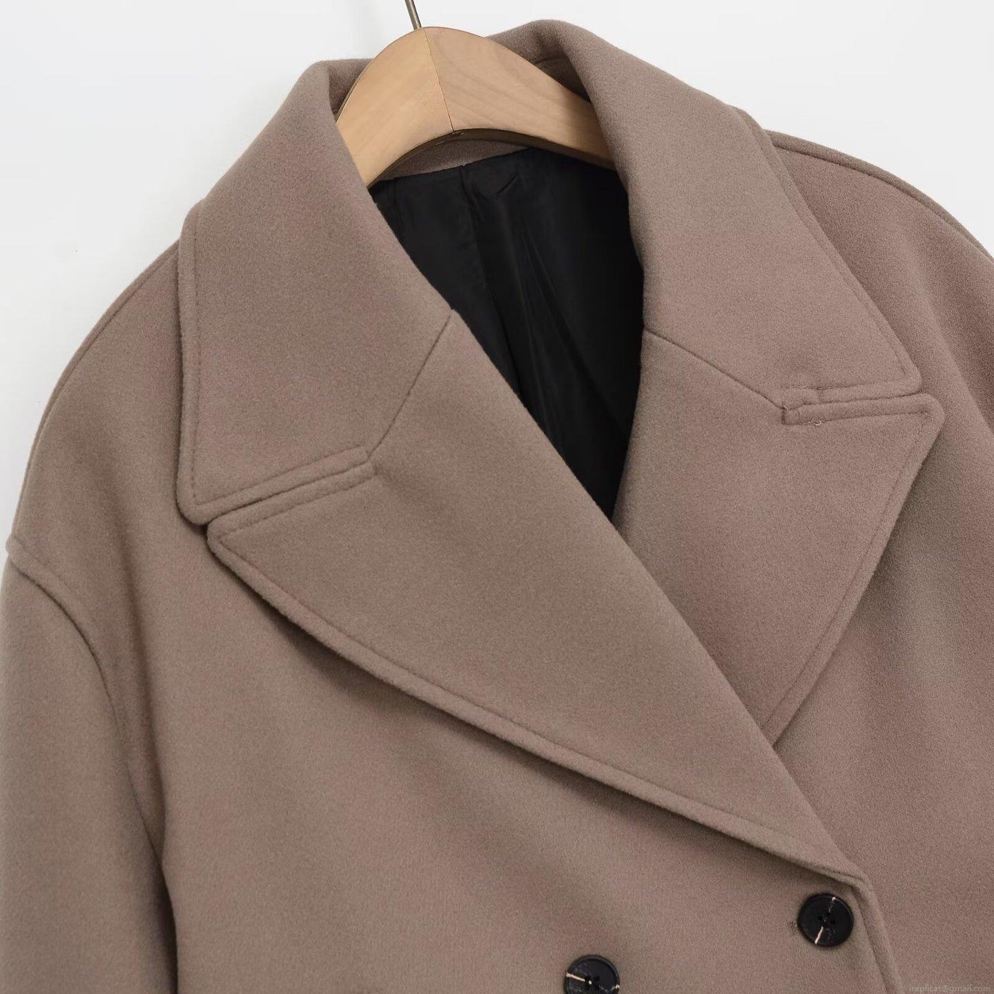 • Women's Short Woolen Coat Double Breasted Oversized Lapel Loose Fit Polyester Spandex Blend Minimalist Jacket Outerwear For Autumn Winter Ladies