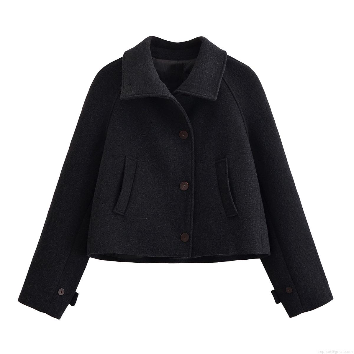 • Women's Short Woolen Coat Lapel Single Breasted Long Sleeve Jacket Solid Color Outwear For Autumn Winter Minimalist Streetwear