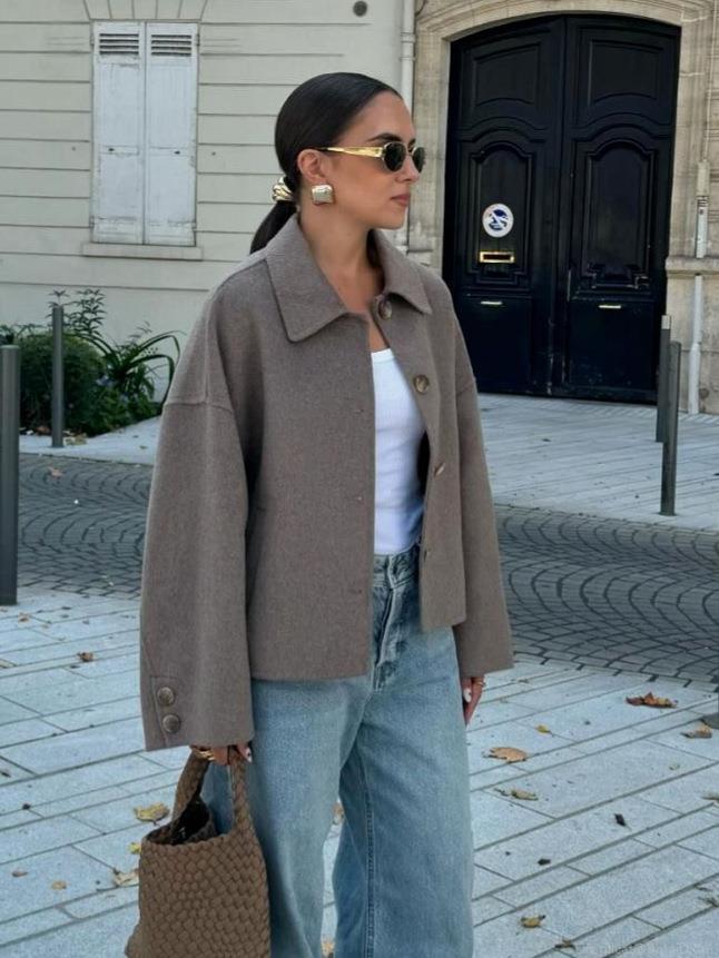 • Women's Short Woolen Coat Solid Color Lapel Long Sleeve Single Breasted Jacket With Pockets Streetwear Casual Autumn Winter Outerwear For Women