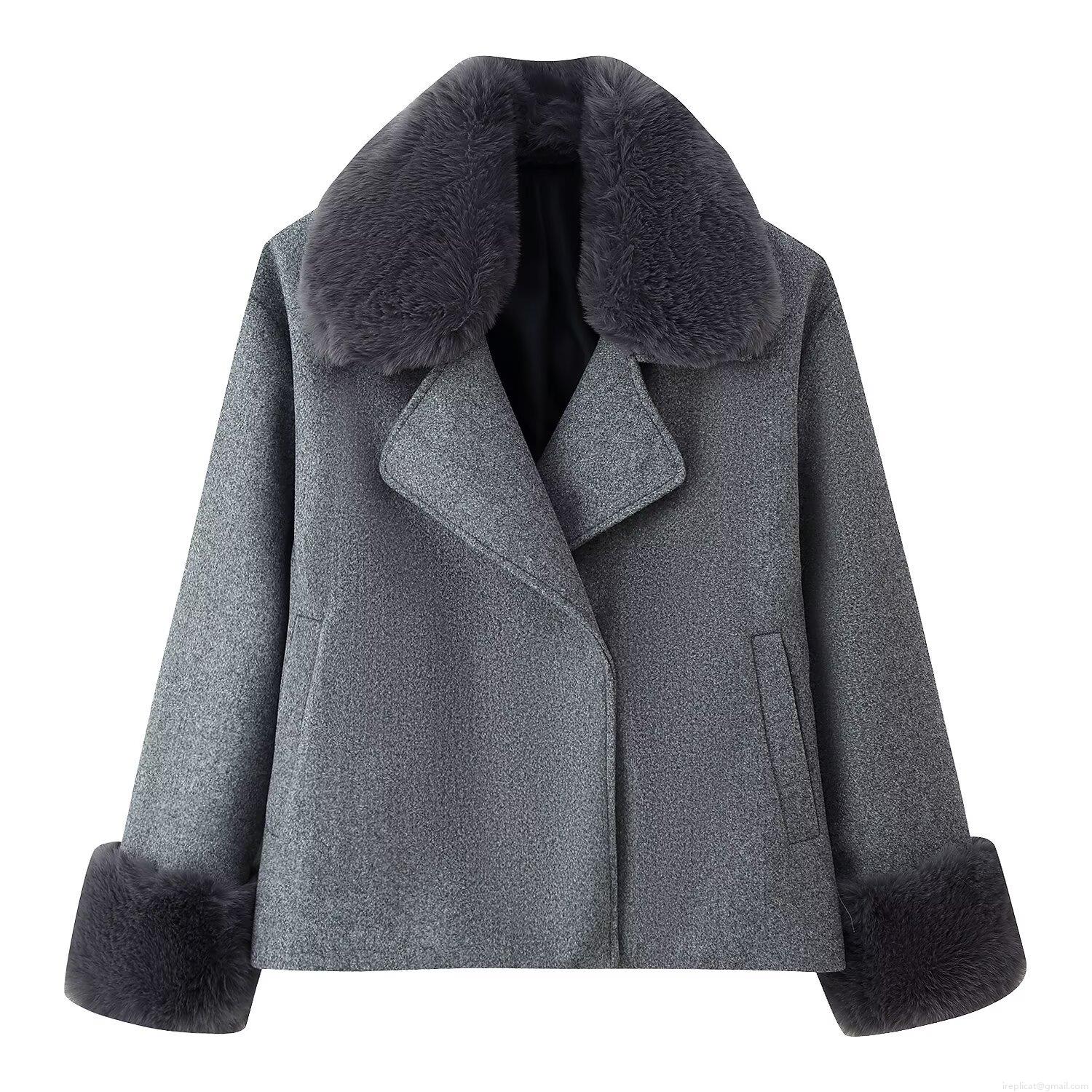 • Women's Short Woolen Coat With Faux Fur Collar And Cuffs Elegant Solid Color Single Breasted Jacket For Autumn Winter Streetwear Ladies Warm Outerwear