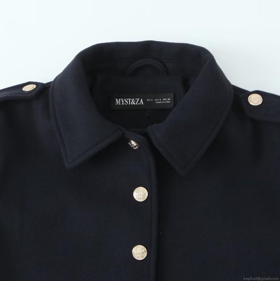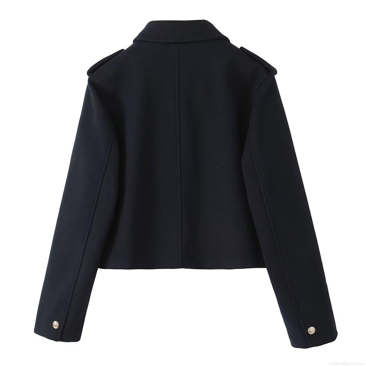 • Women's Short Woolen Jacket Coat Fashion Solid Color Turn-down Collar Outerwear With Embossed Metal Buttons And Shoulder Straps For Autumn Daily Casual Lady Clothing