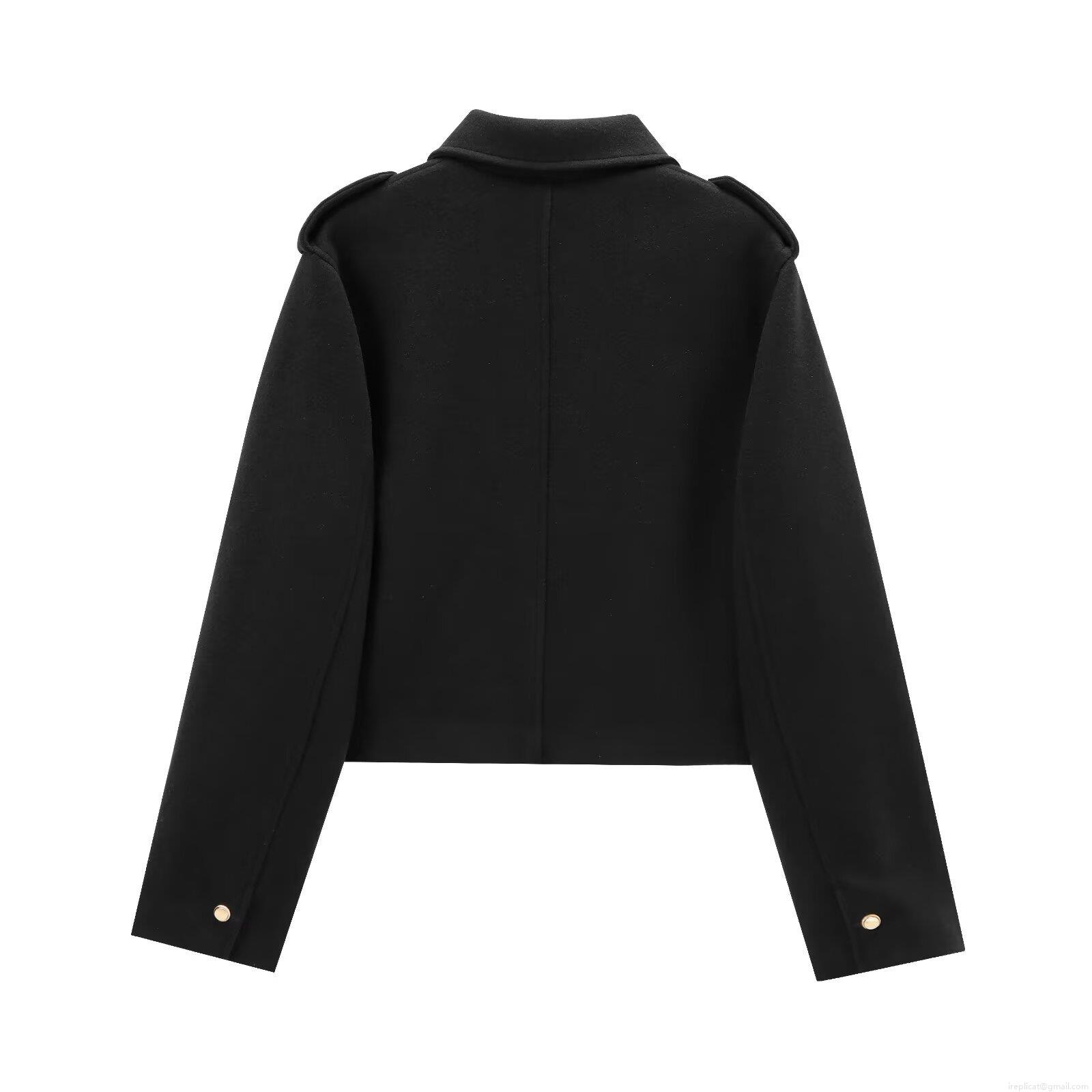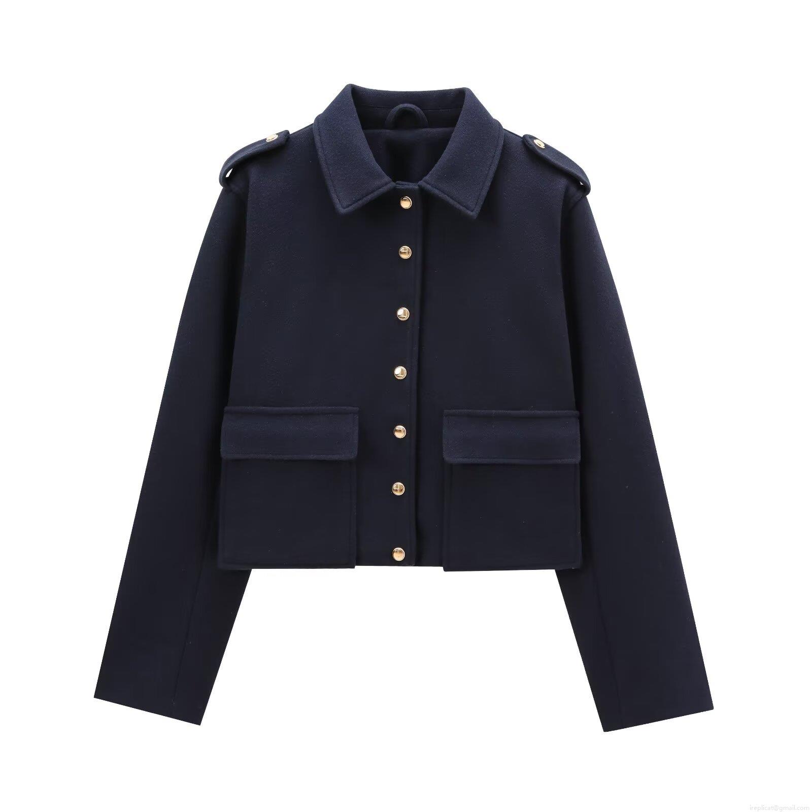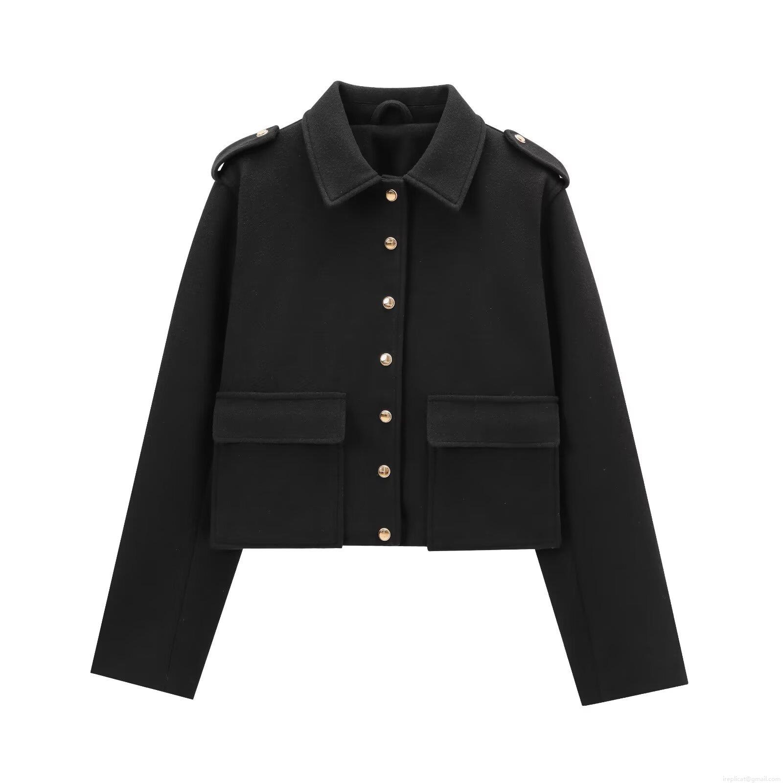 • Women's Short Woolen Jacket Elegant Lapel Collar Gold Buttons Long Sleeve Commute Outerwear Solid Color Coat Autumn Winter Fashion Casual Apparel
