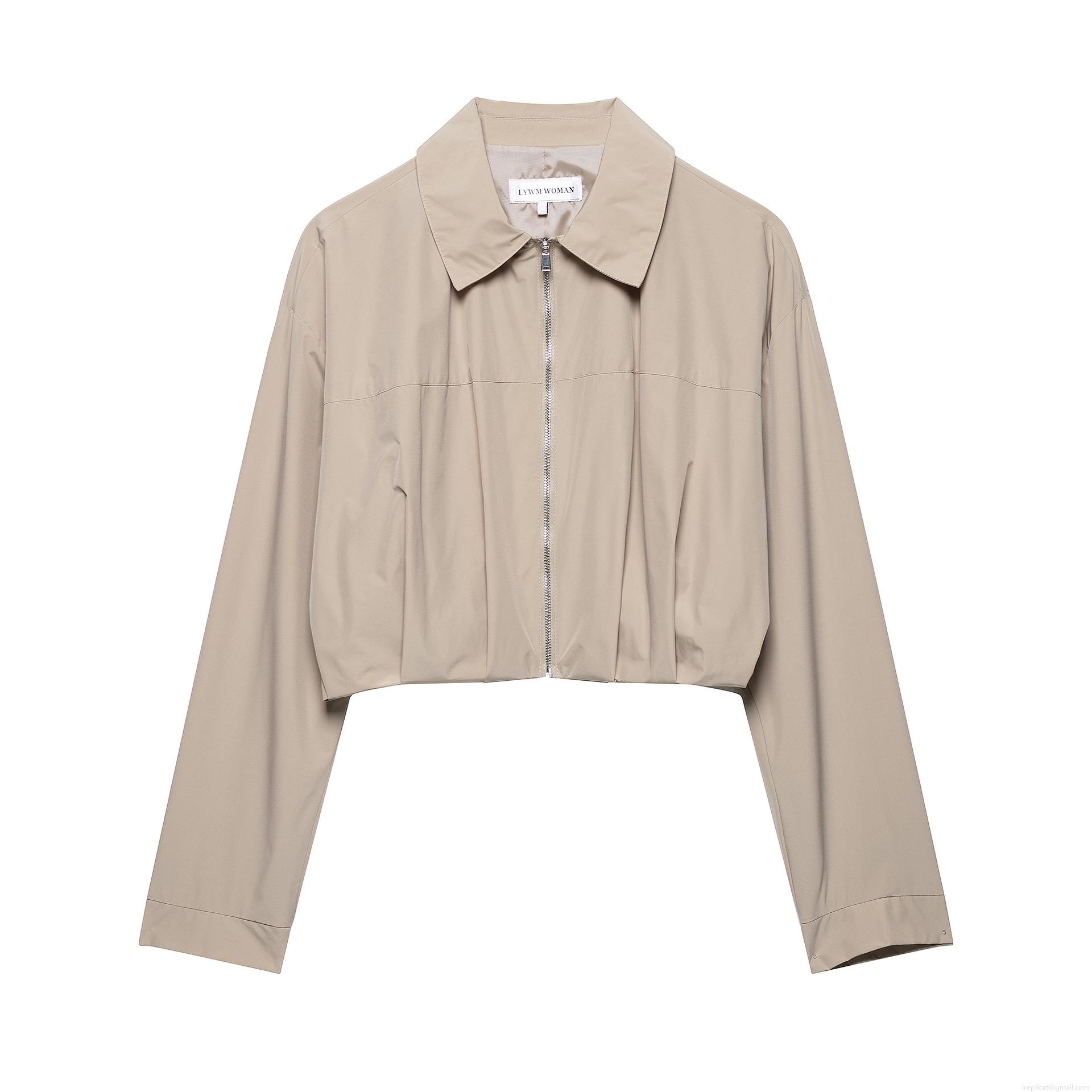 • Women's Short Zip Up Jacket Polyester Long Sleeve Turn-over Collar Pleated Hem Casual Streetwear Fashion Outerwear for Ladies Spring Autumn Solid Color