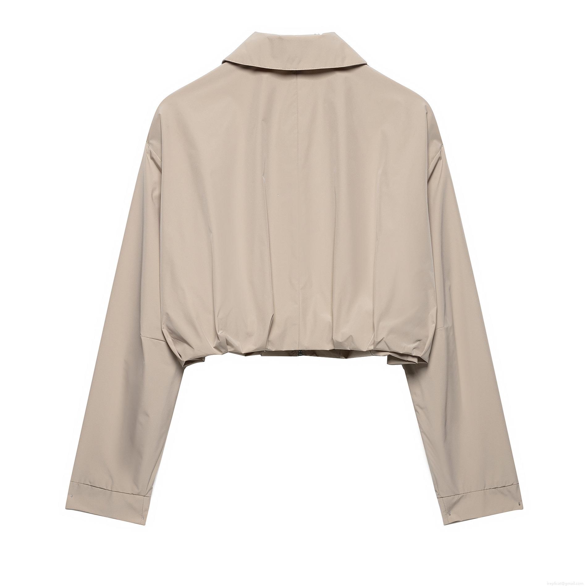 Women's Short Zip Up Jacket Polyester Long Sleeve Turn-over Collar Pleated Hem Casual Streetwear Fashion Outerwear for Ladies Spring Autumn Solid Color