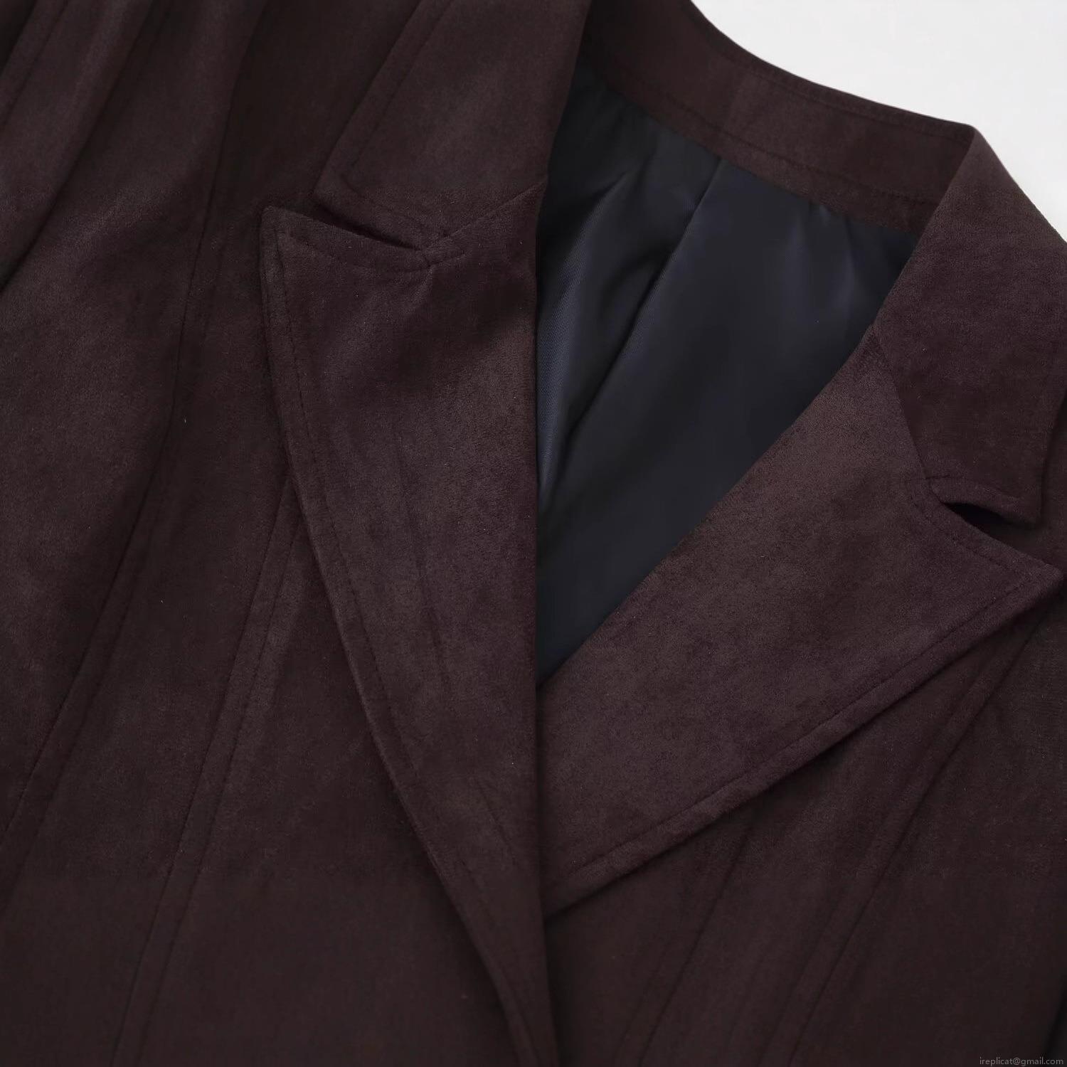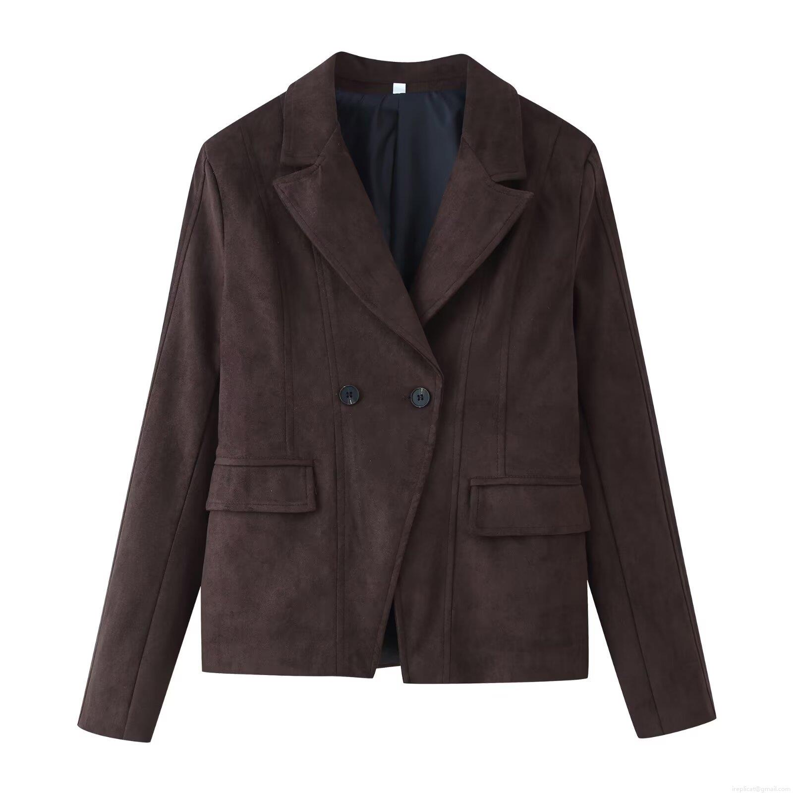 Women's Slim Suede Double-Breasted Lapel Jacket Autumn Solid Color Casual Blazer Coat Streetwear Office Lady Short Outwear