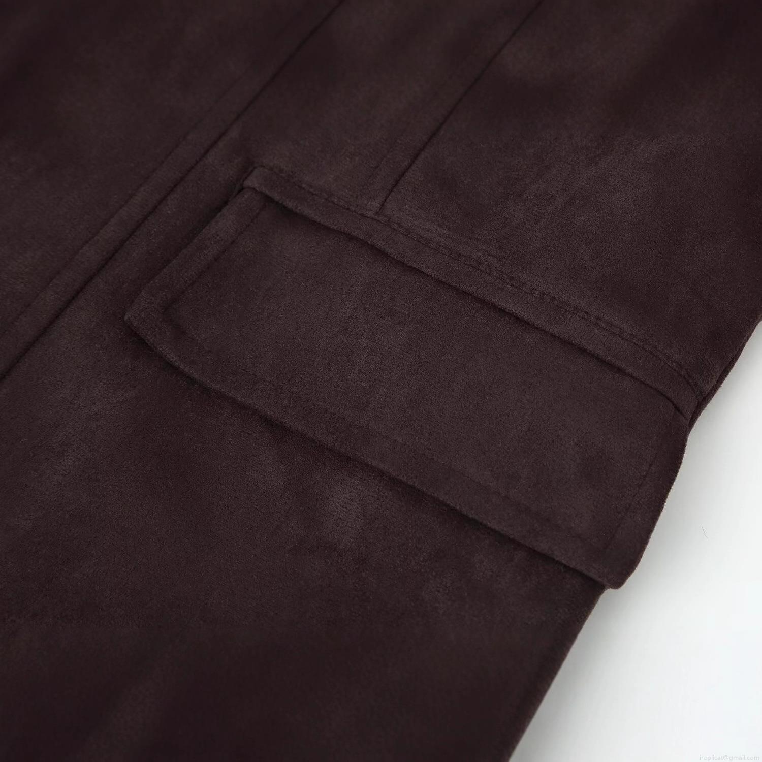 Solid Color, Pocket, Double-breasted, Suede Texture