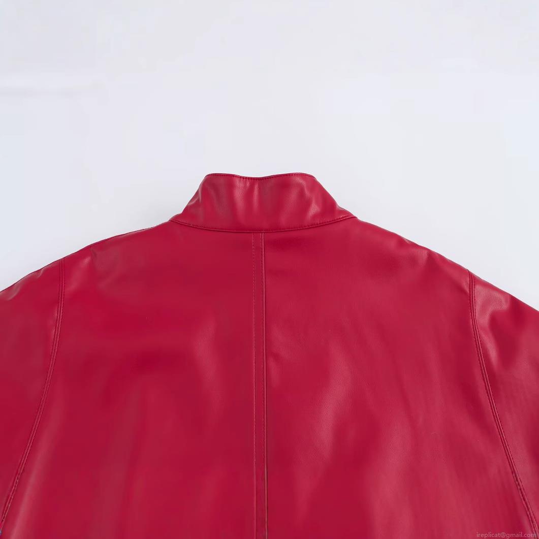• Women's Solid Red PU Leather Cloak Jacket Zip Up Stand Collar Loose Poncho Outerwear Streetwear Casual Short Cape Coat For Spring Autumn