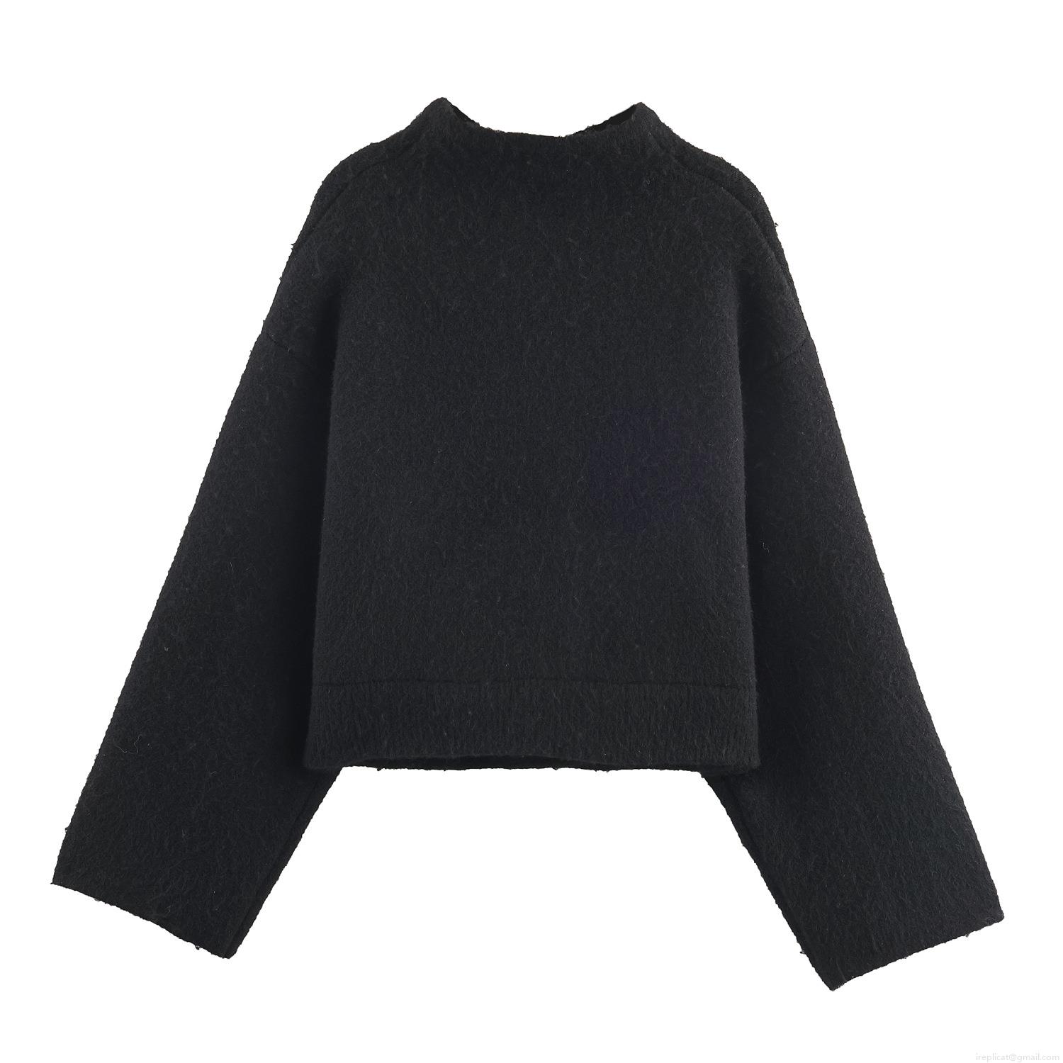 • Women's Solid Stand Collar Long Sleeve Single Breasted Knit Jacket Autumn Winter Casual Wool-Like Outerwear Coat Fashion Streetwear