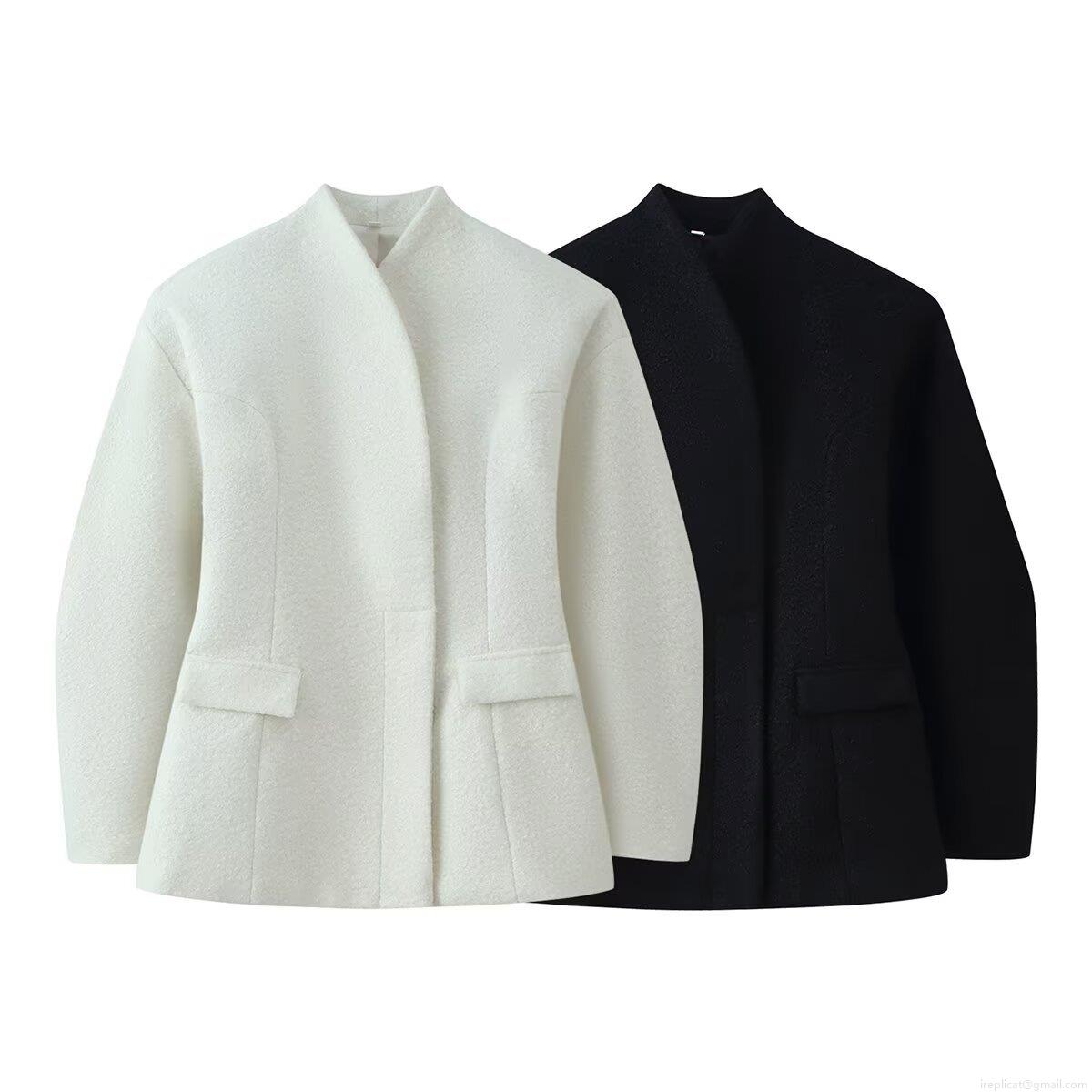 • Women's Solid Woolen Look Coat Elegant Asymmetrical Placket Waist Tightening Jacket Stand Collar Long Sleeve Outerwear With Flap Pockets For Autumn Winter Casual Daily Fashion