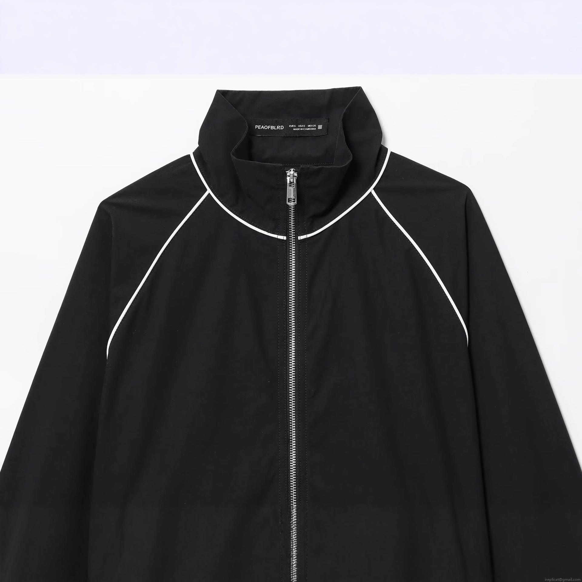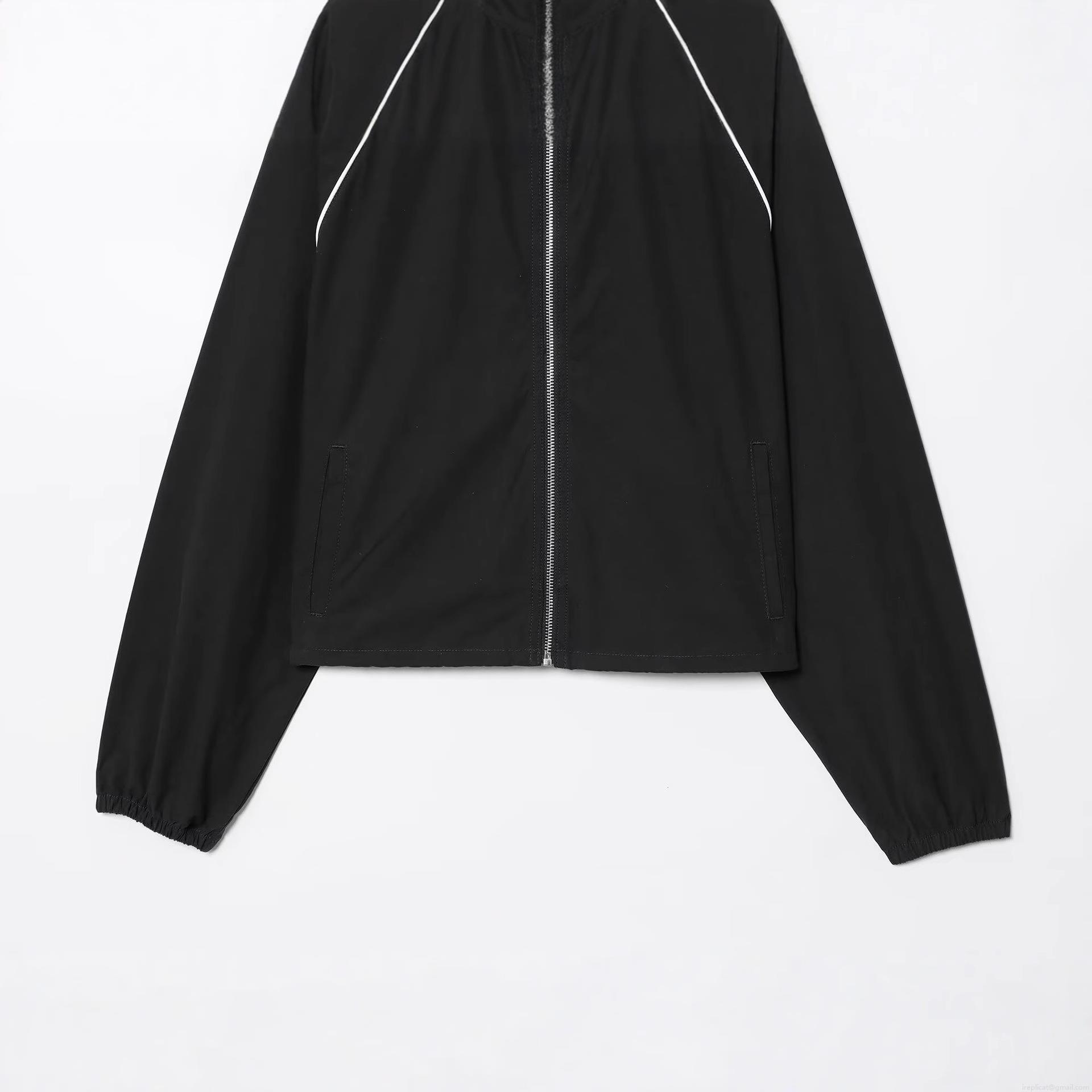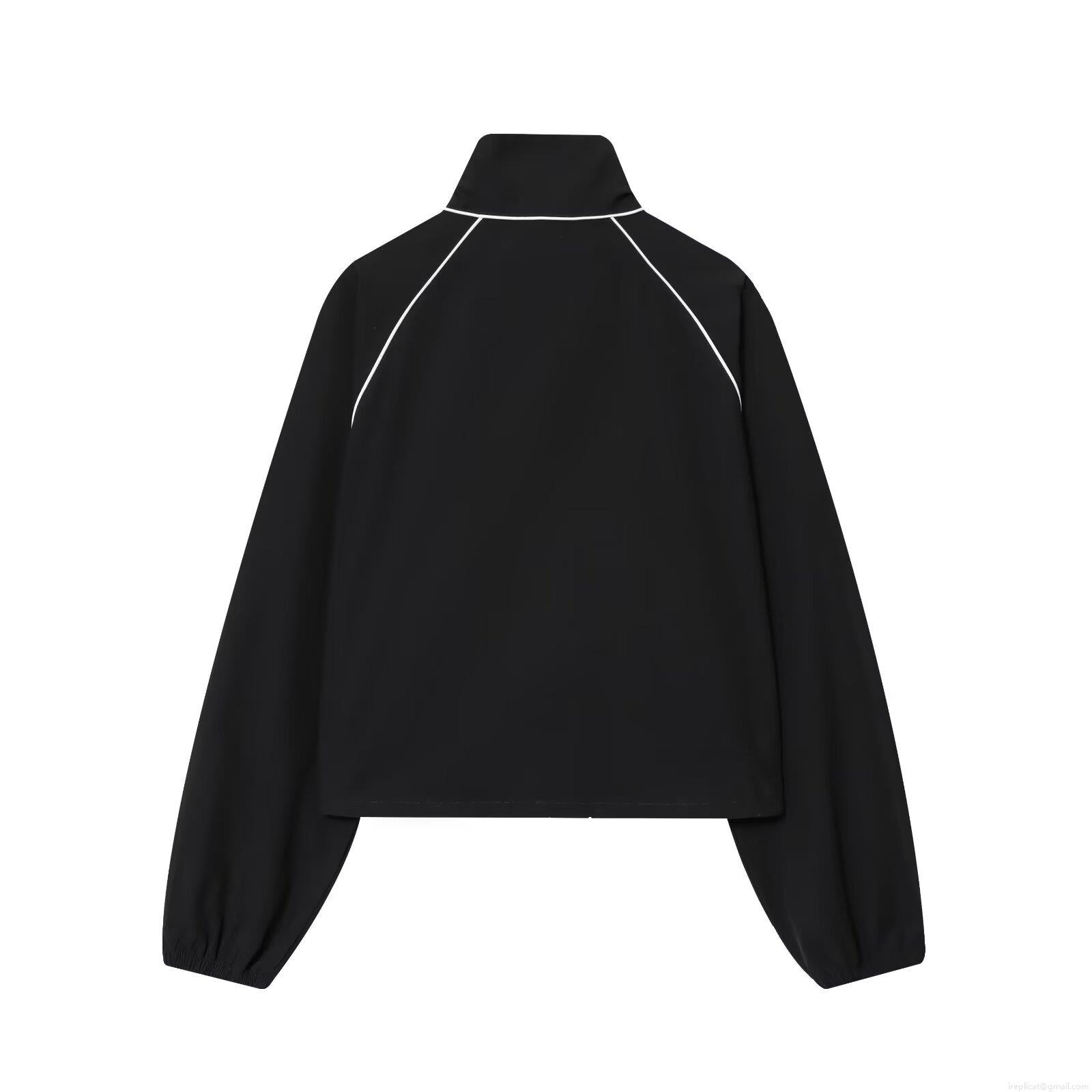 • Women's Sporty Black Bomber Jacket Polyester Windproof Stand Collar Coat With Contrast Piping Streetwear Outerwear For Daily Casual Wear