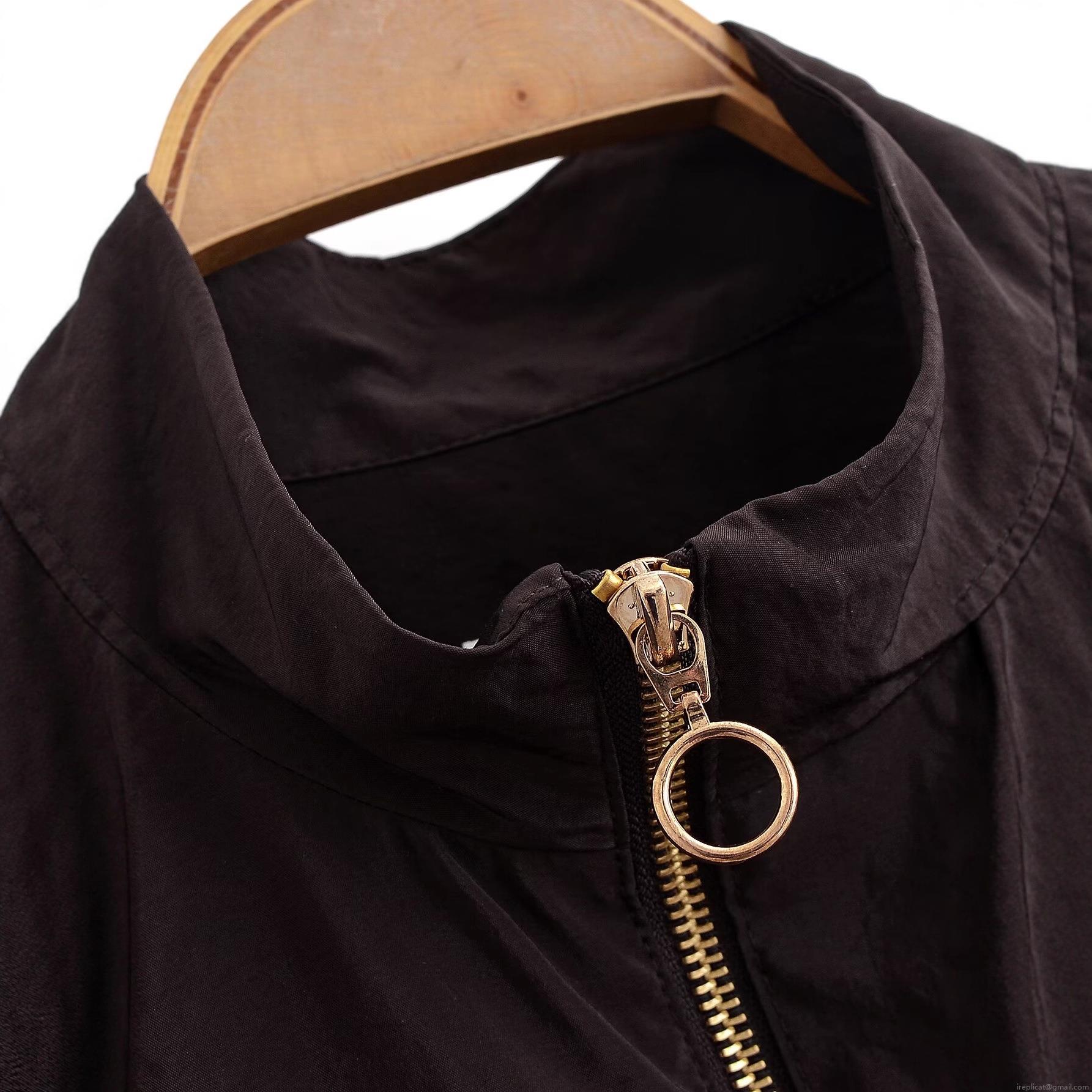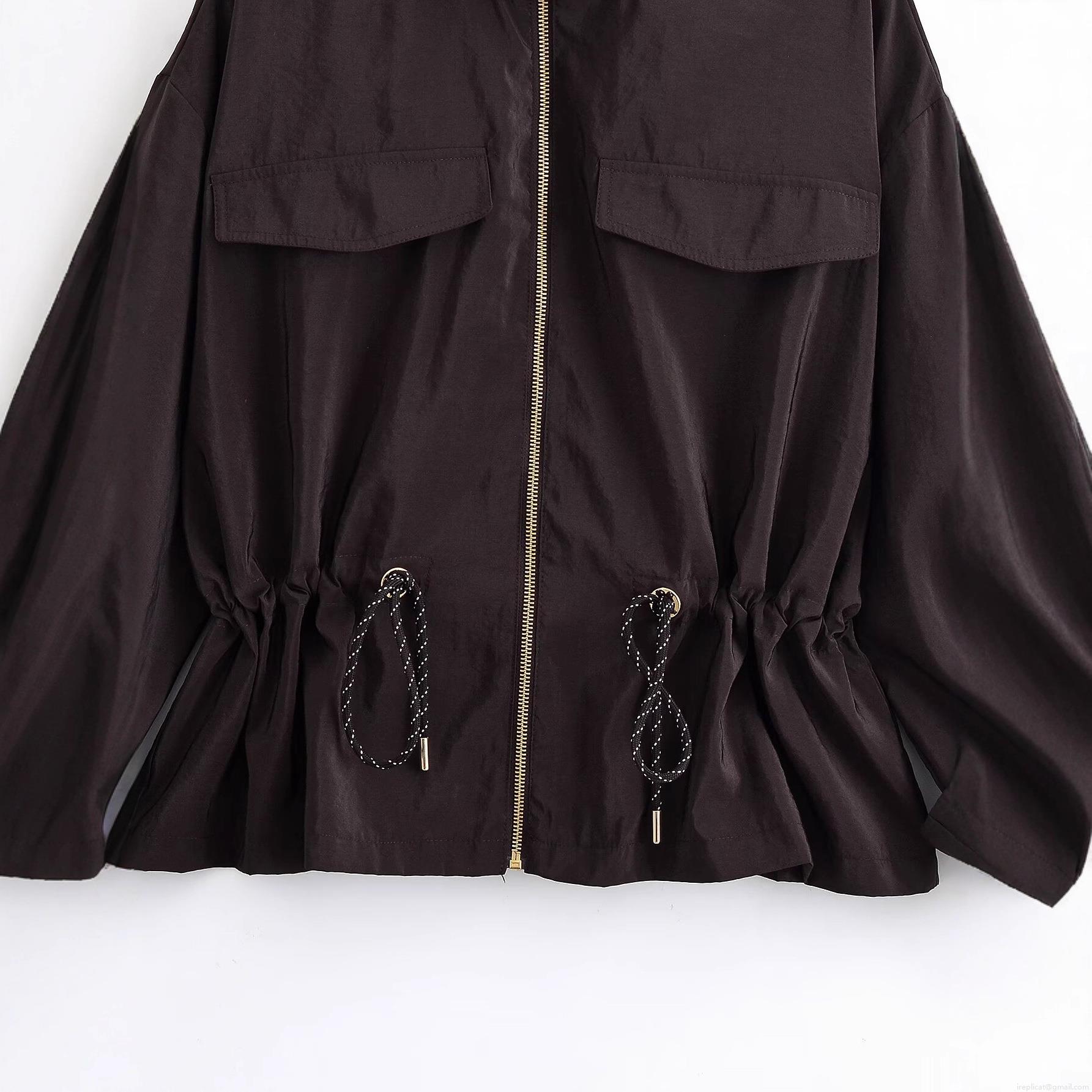 • Women's Stand Collar Long Sleeve Jacket Lightweight Polyester Windbreaker With Drawstring Waist And Gold Zipper Solid Color Casual Streetwear Coat