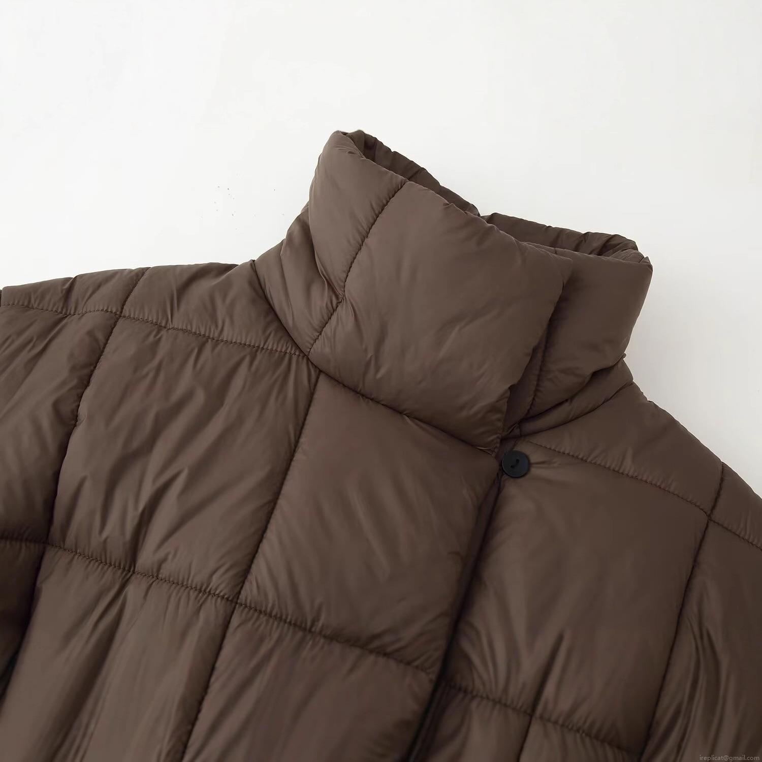 • Women's Stand Collar Quilted Padded Jacket With Drawstring Waist Solid Color Polyester Warm Winter Outerwear Casual Puffer Coat For Women