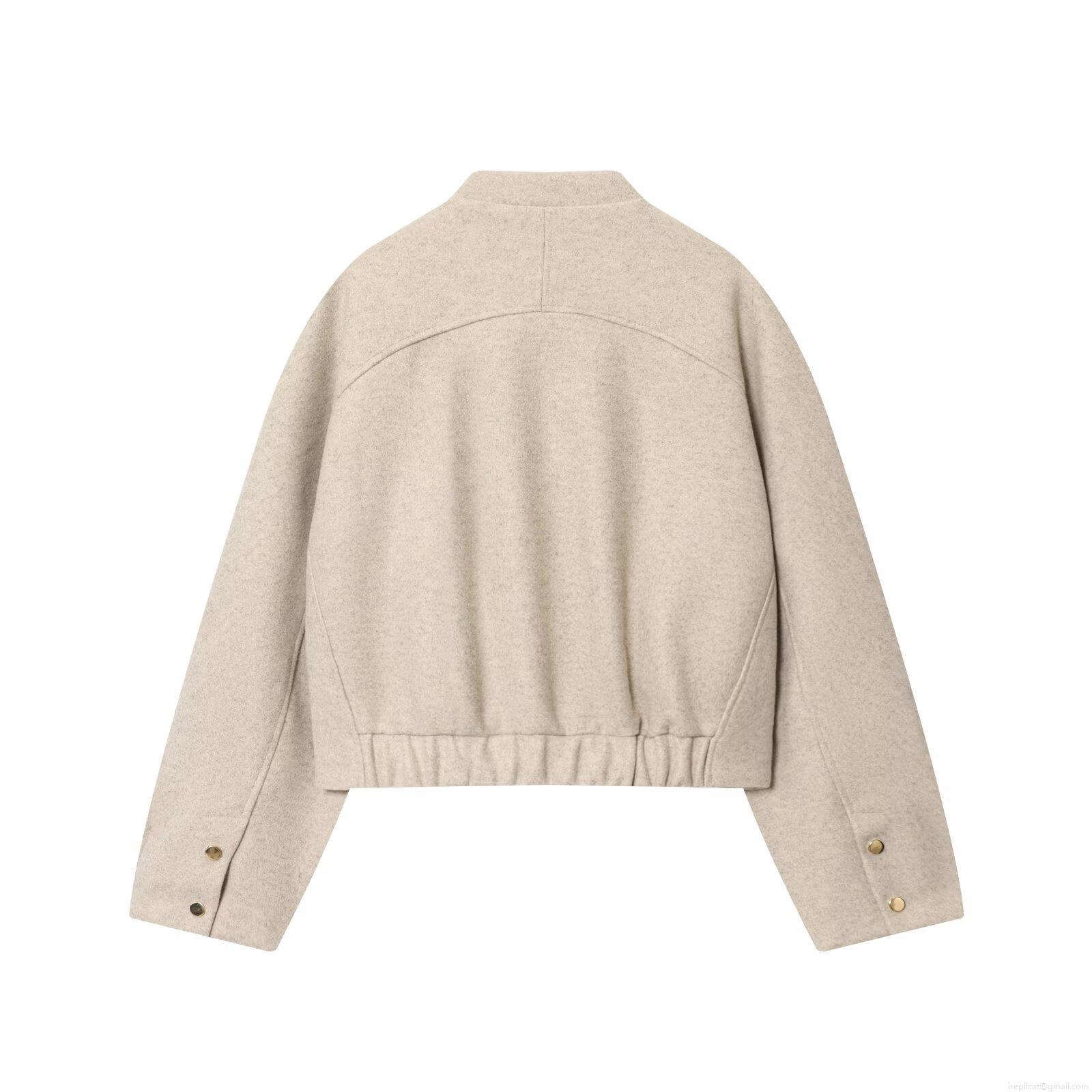 • Women's Stand Collar Short Baseball Bomber Jacket Solid Color Wool-Like Single Breasted Outerwear With Pockets And Elastic Hem For Autumn Streetwear Fashion