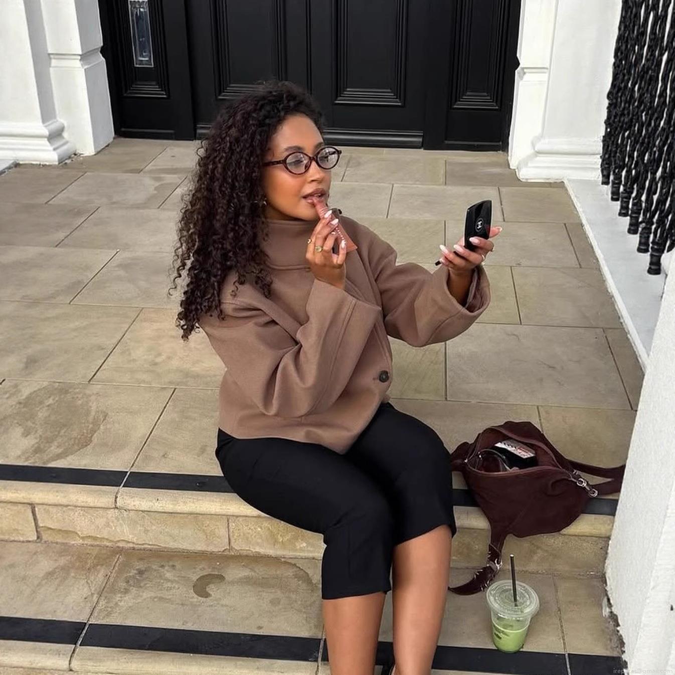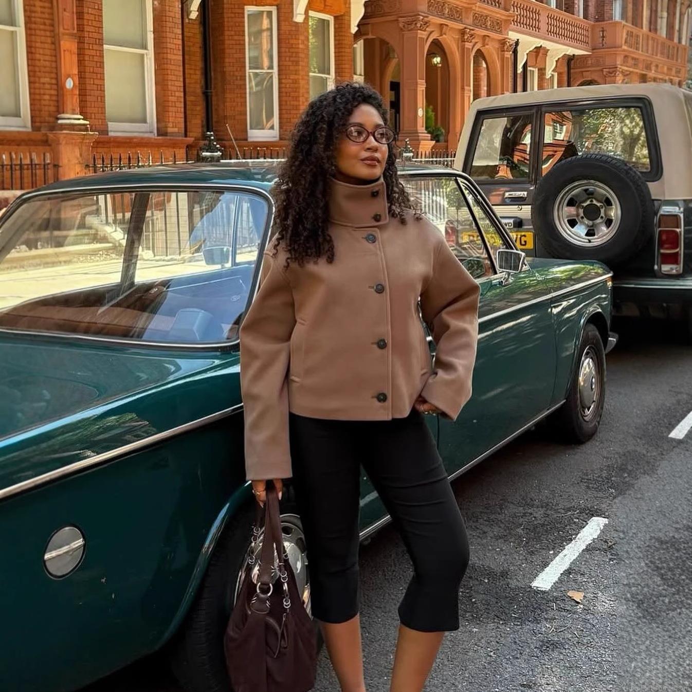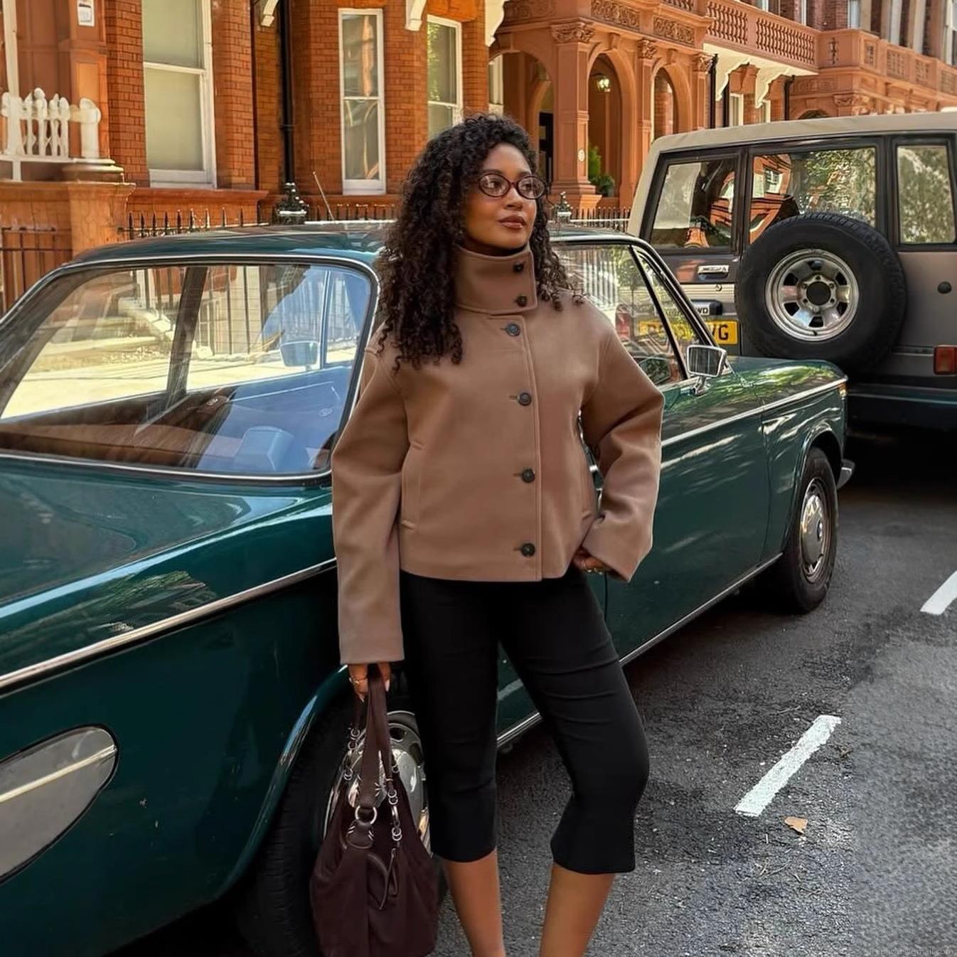 • Women's Stand Collar Short Jacket Woolen Button Down Long Sleeve Warm Casual Outerwear Streetwear Autumn Winter Ladies Fashion Coat