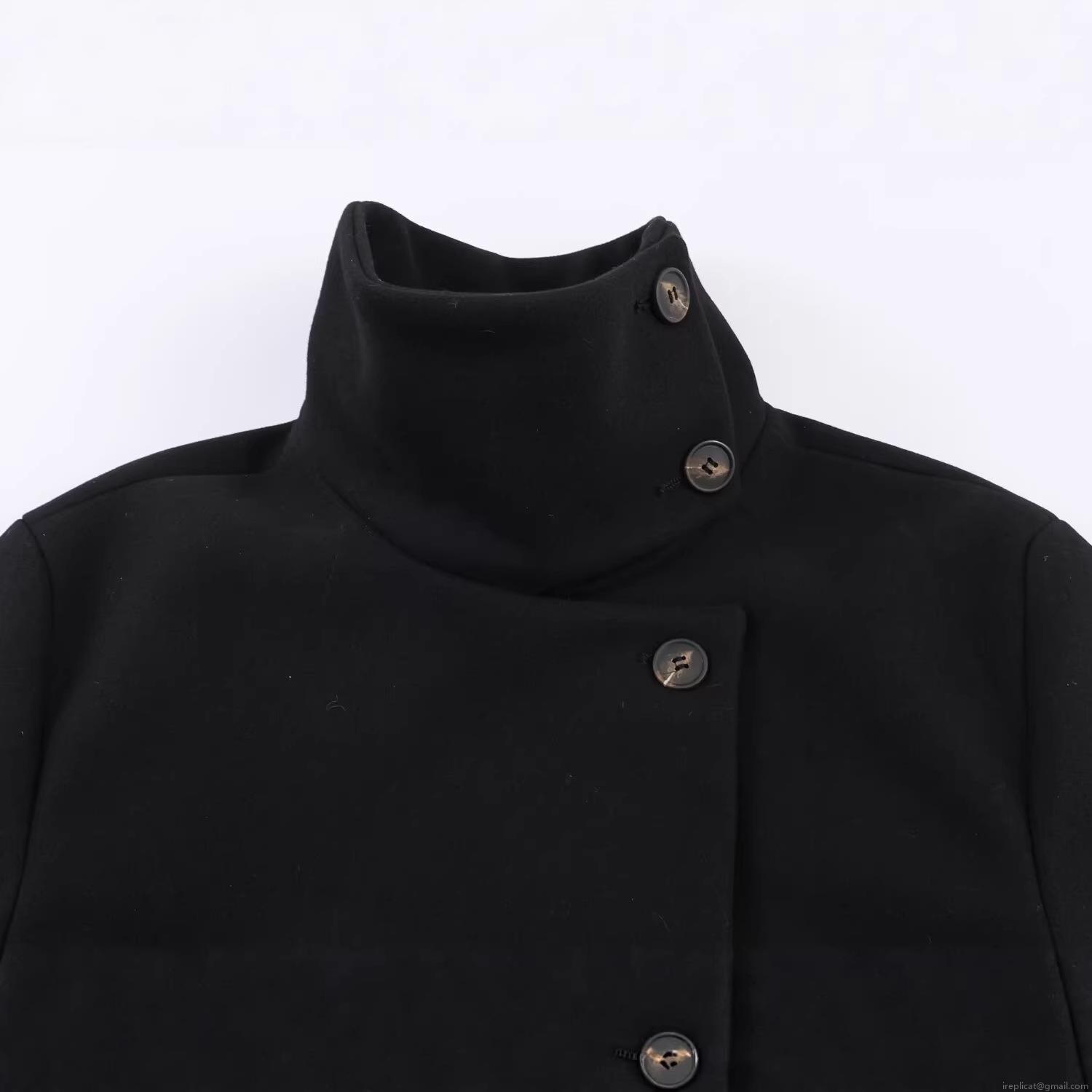 Solid Color, Stand-up Collar, Marble-patterned Buttons, Asymmetrical Placket