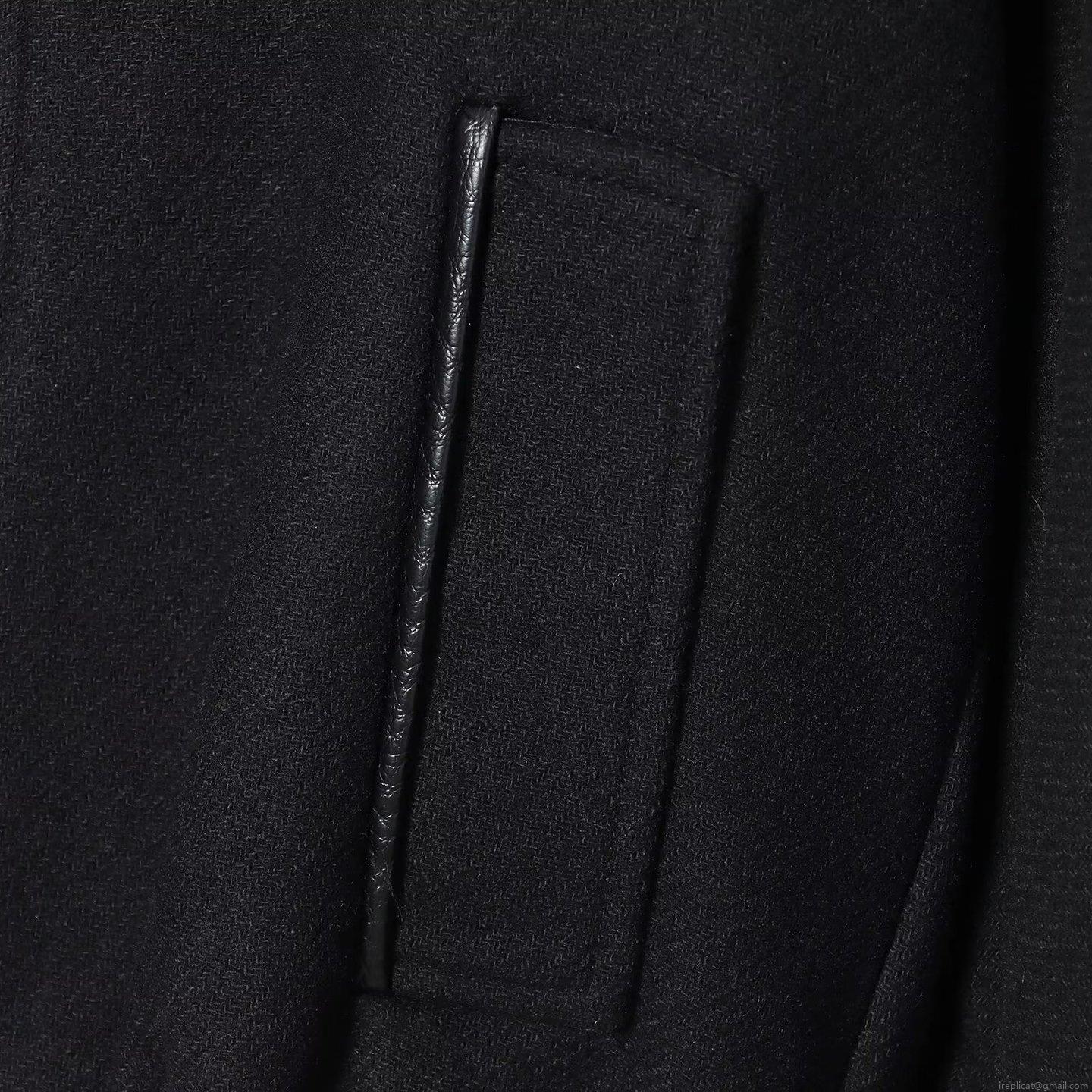 • Women's Street Fashion Black Twill Woolen Jacket Casual Long Sleeve Lapel Zipper Outerwear With Faux Leather Patchwork Details Oversized Coat