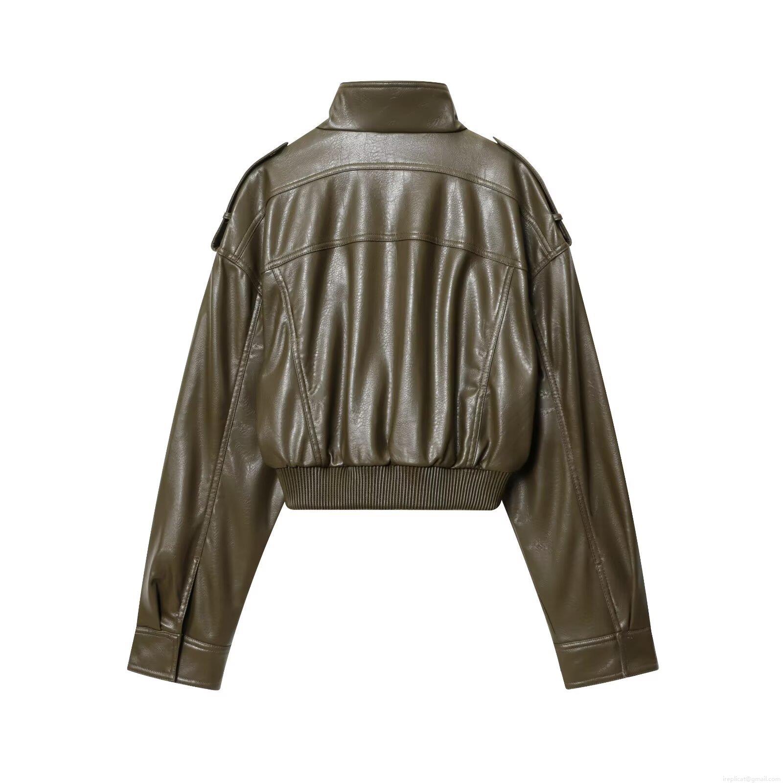 • Women's Streetwear PU Faux Leather Short Jacket Stand Collar Long Sleeve Moto Biker Cropped Outwear With Pockets Zipper Closure Ribbed Hem For Autumn Winter