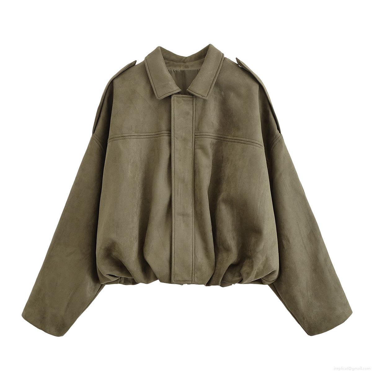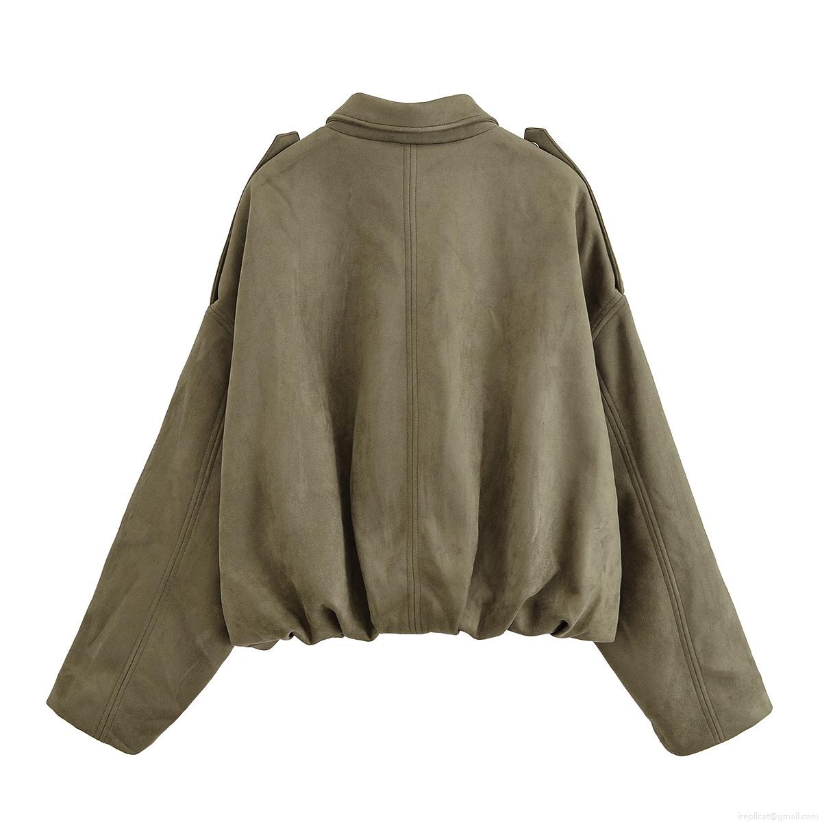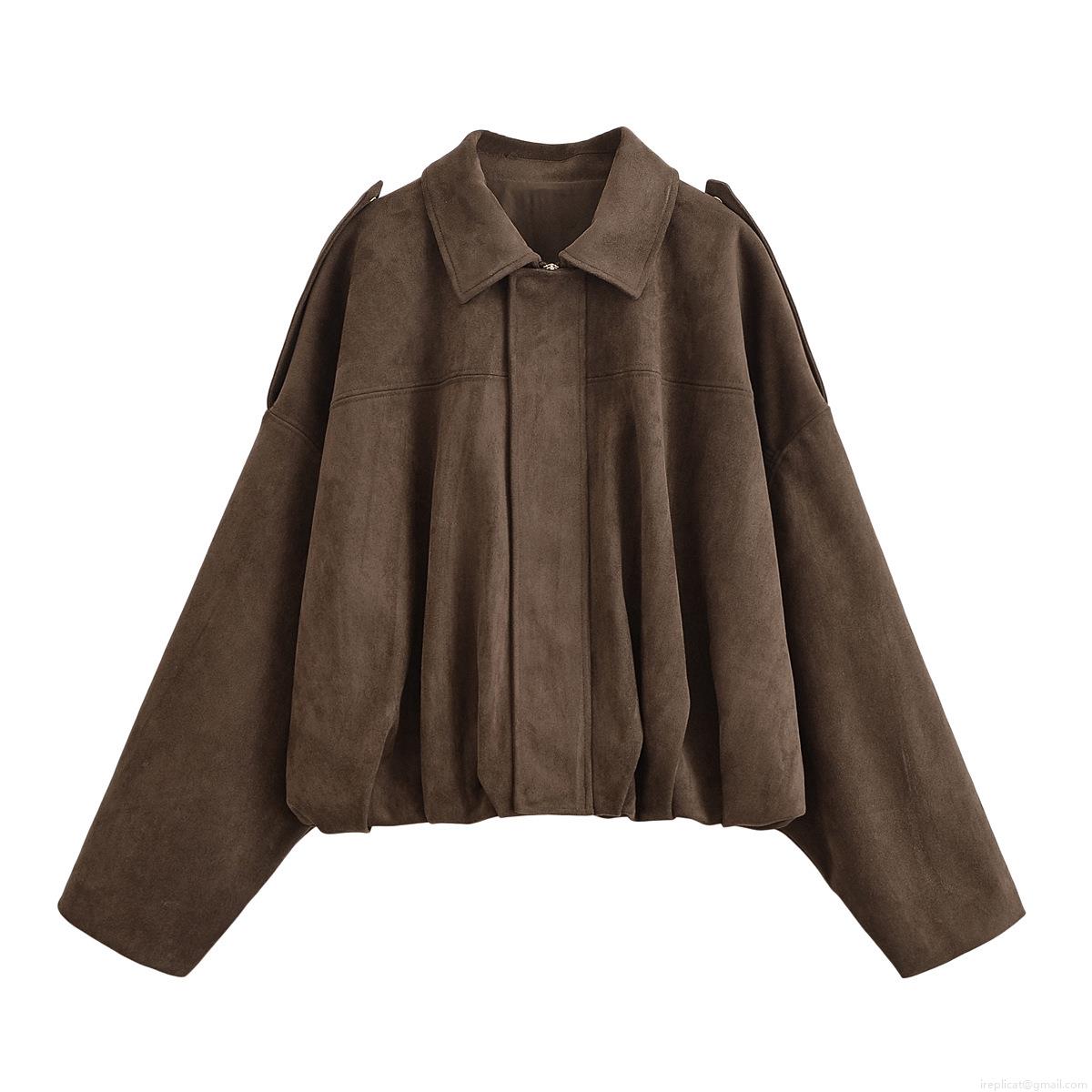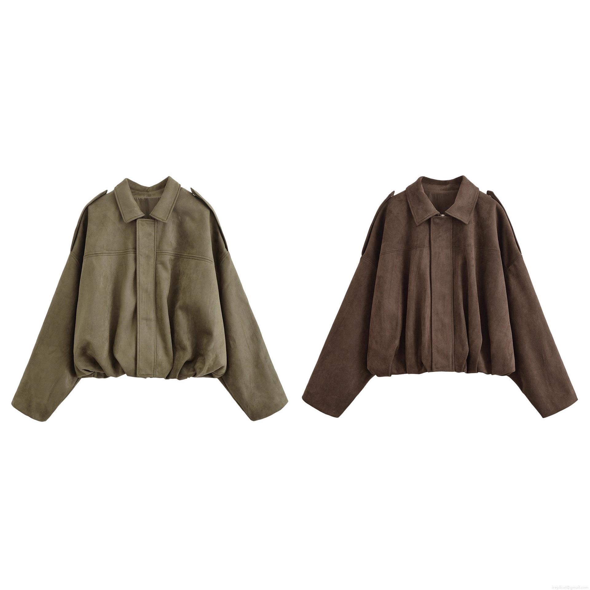 • Women's Suede Composite Jacket Oversized Lapel Long Sleeve Bomber Coat Autumn Winter Streetwear Short Outerwear With Zipper Shoulder Straps Pockets