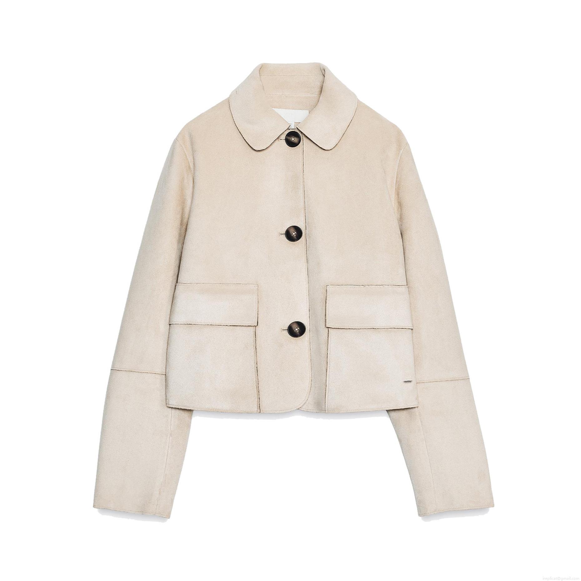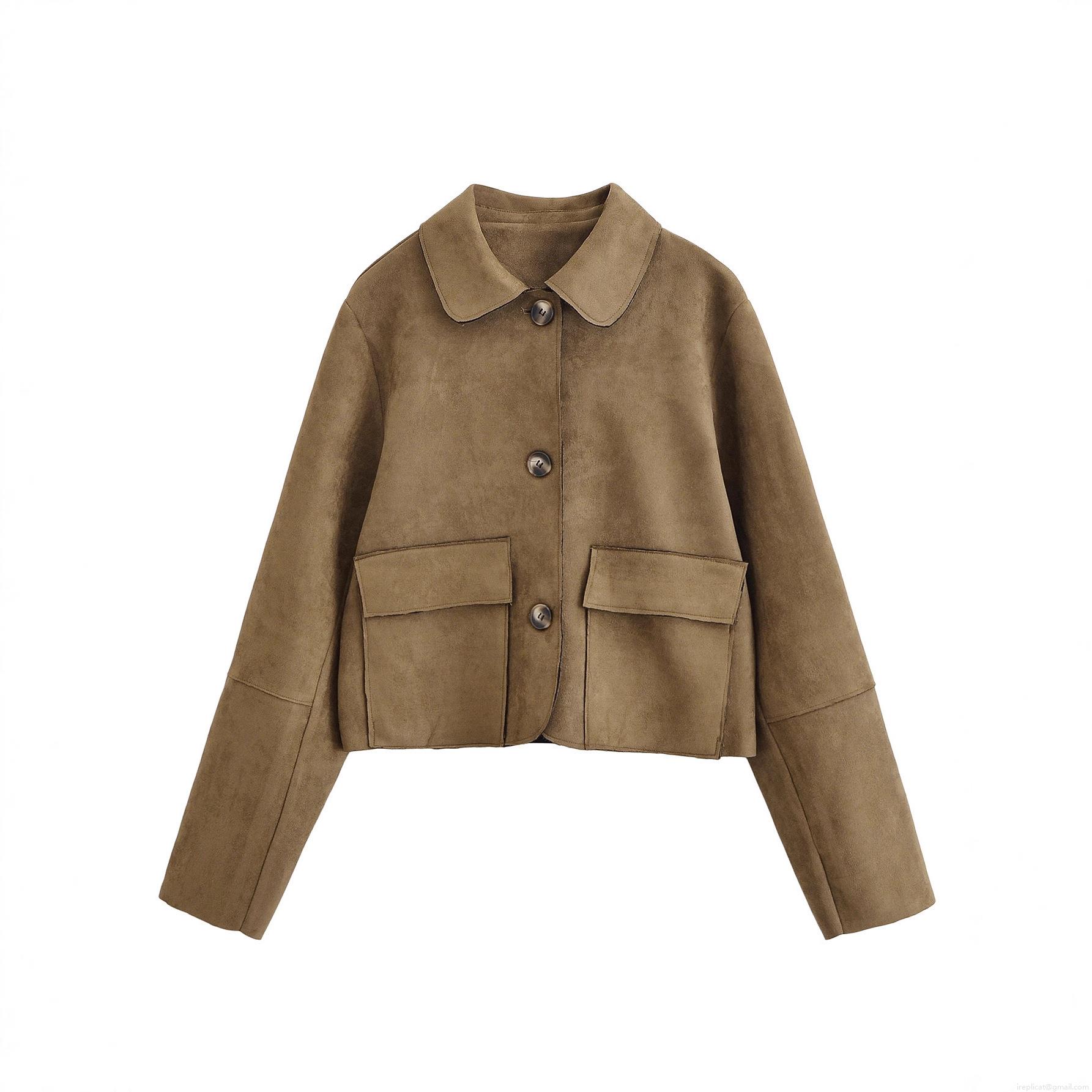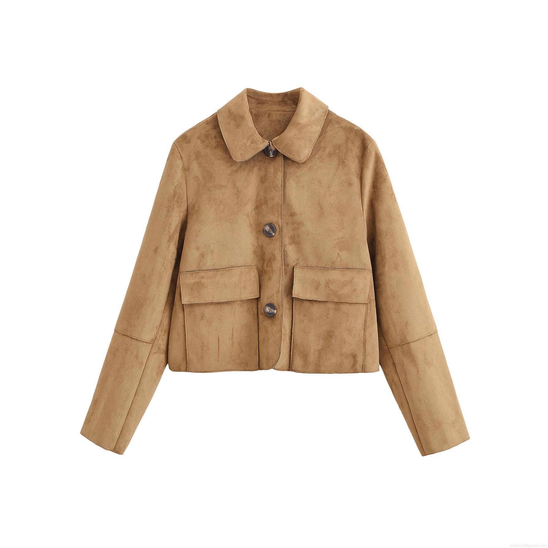 • Women's Suede Cropped Jacket Retro Lapel Single Breasted Short Coat Streetwear Long Sleeve Outerwear With Pockets Casual Fashion Solid Color Autumn Jacket For Ladies