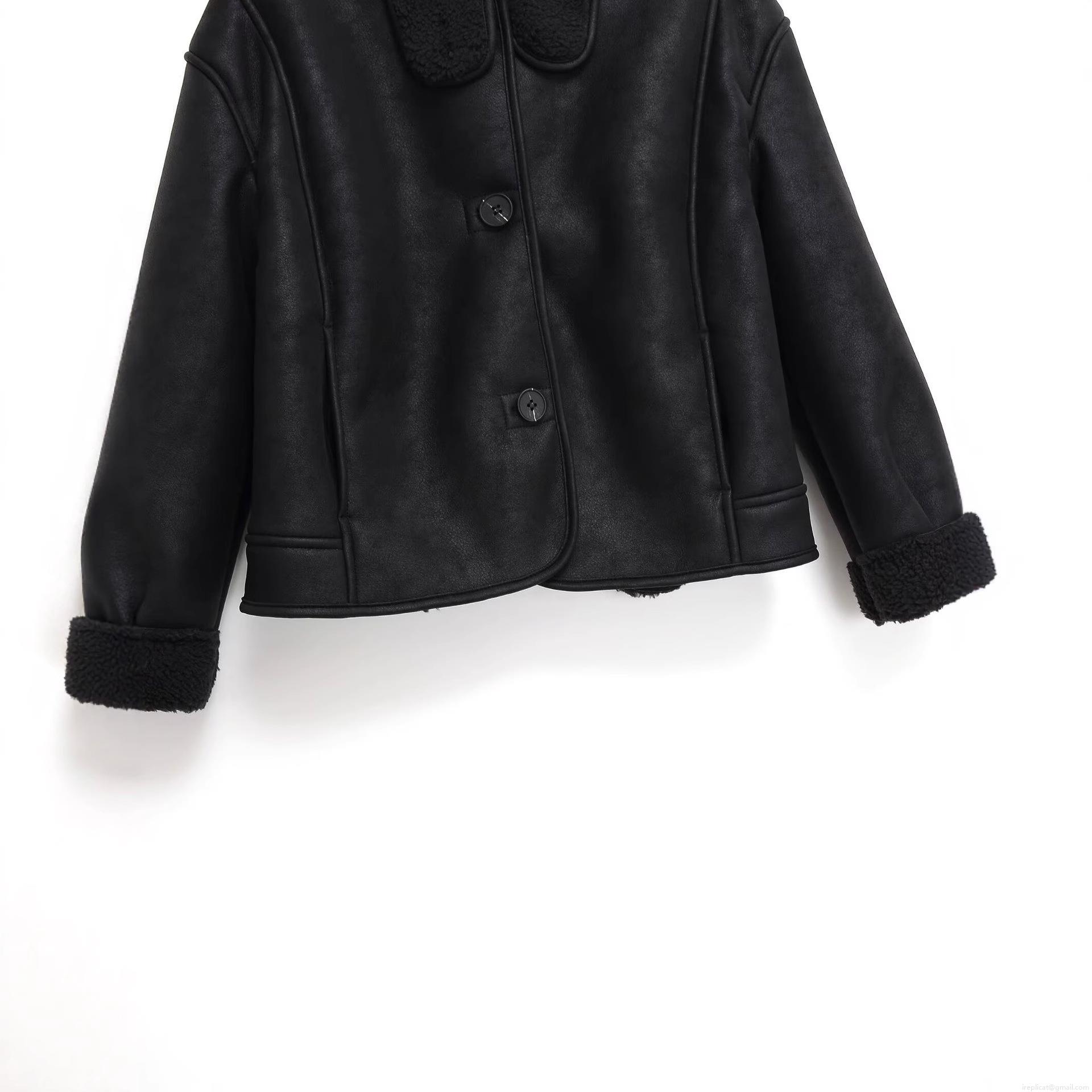 • Women's Suede Effect Faux Fur Lined Short Jacket Stand Collar Lamb Wool Trim Single Breasted Casual Outerwear Coat Fashion Streetwear