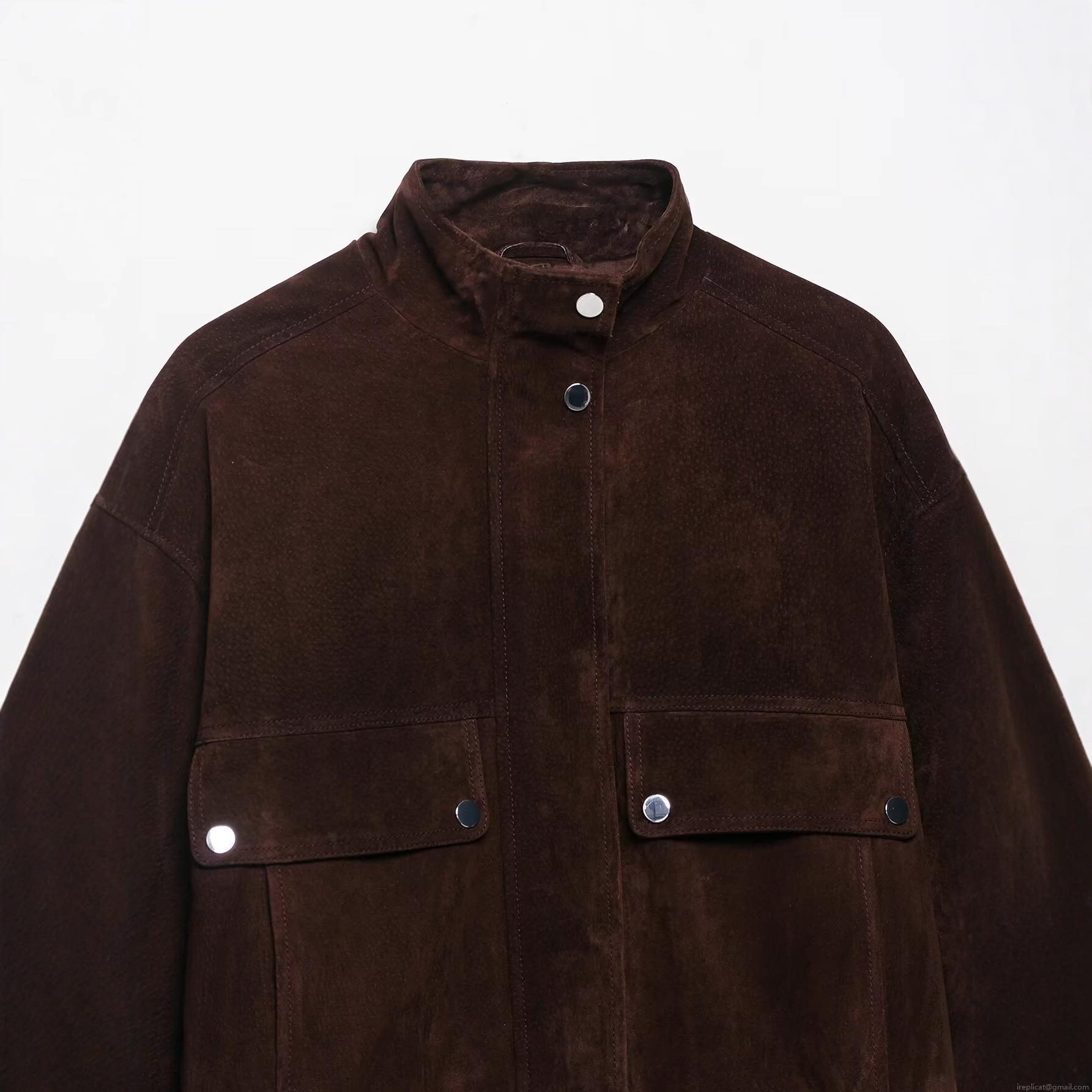 • Women's Suede Pilot Jacket Faux Leather Bomber Outerwear Stand Collar With Metal Snaps Large Pockets Elastic Hem Solid Color Casual Streetwear Long Sleeve Jacket