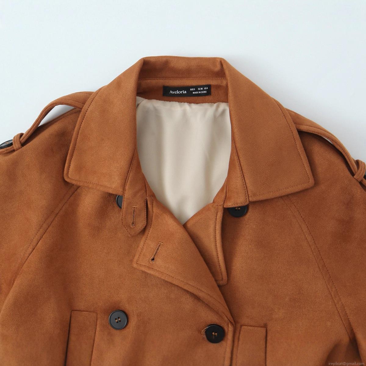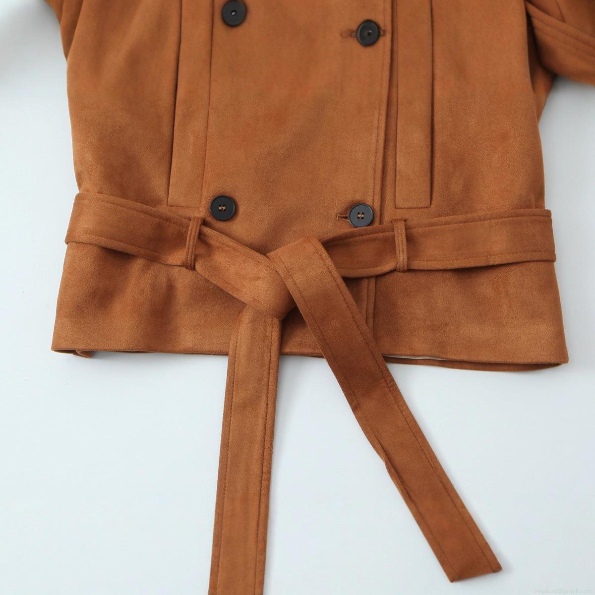 • Women's Suede Velvet Jacket Double Breasted Lapel Biker Coat With Belt Autumn Winter Short Streetwear Outerwear For Women