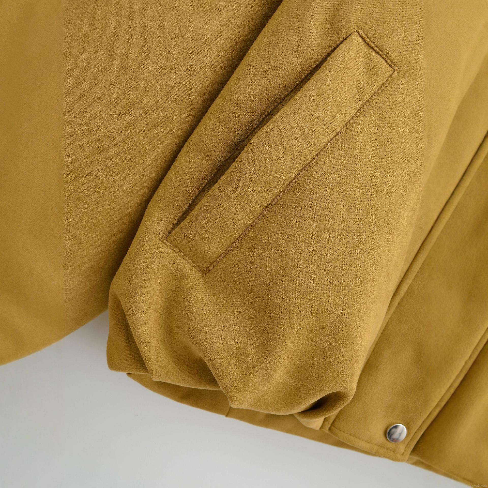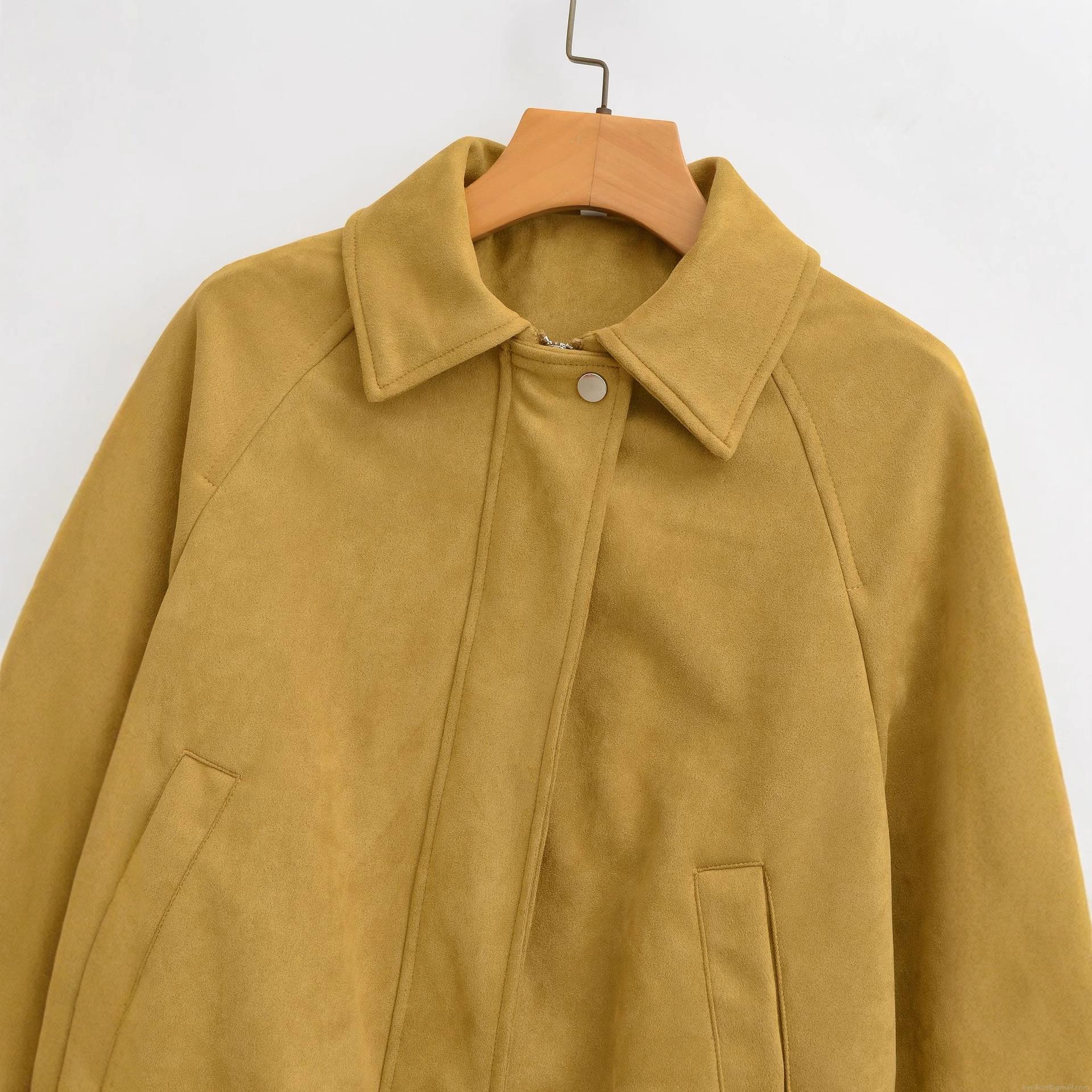 • Women's Suede-Like Bomber Jacket Fashion Loose Fit Short Jacket With Pockets Casual Streetwear Long Sleeve Outerwear Solid Color Retro Lapel Coat For Autumn Spring