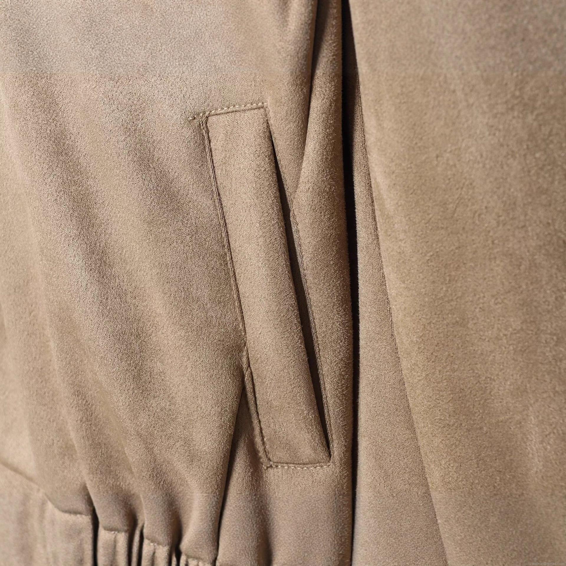 • Women's Suede-like Bomber Jacket Stand Collar Shoulder Straps Zipper Long Sleeve Khaki Coat Streetwear Autumn Outerwear For Ladies