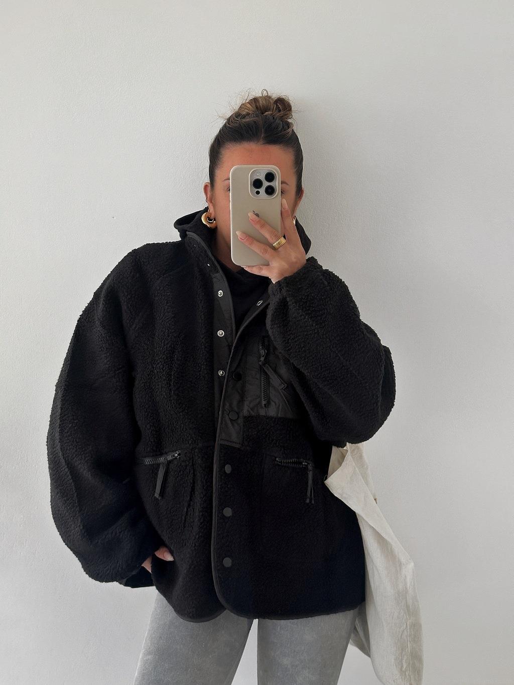 • Women's Thick Sherpa Fleece Jacket Hooded Teddy Coat Patchwork Zip Up Outerwear With Pockets Casual Loose Fit Workwear Style For Autumn Winter