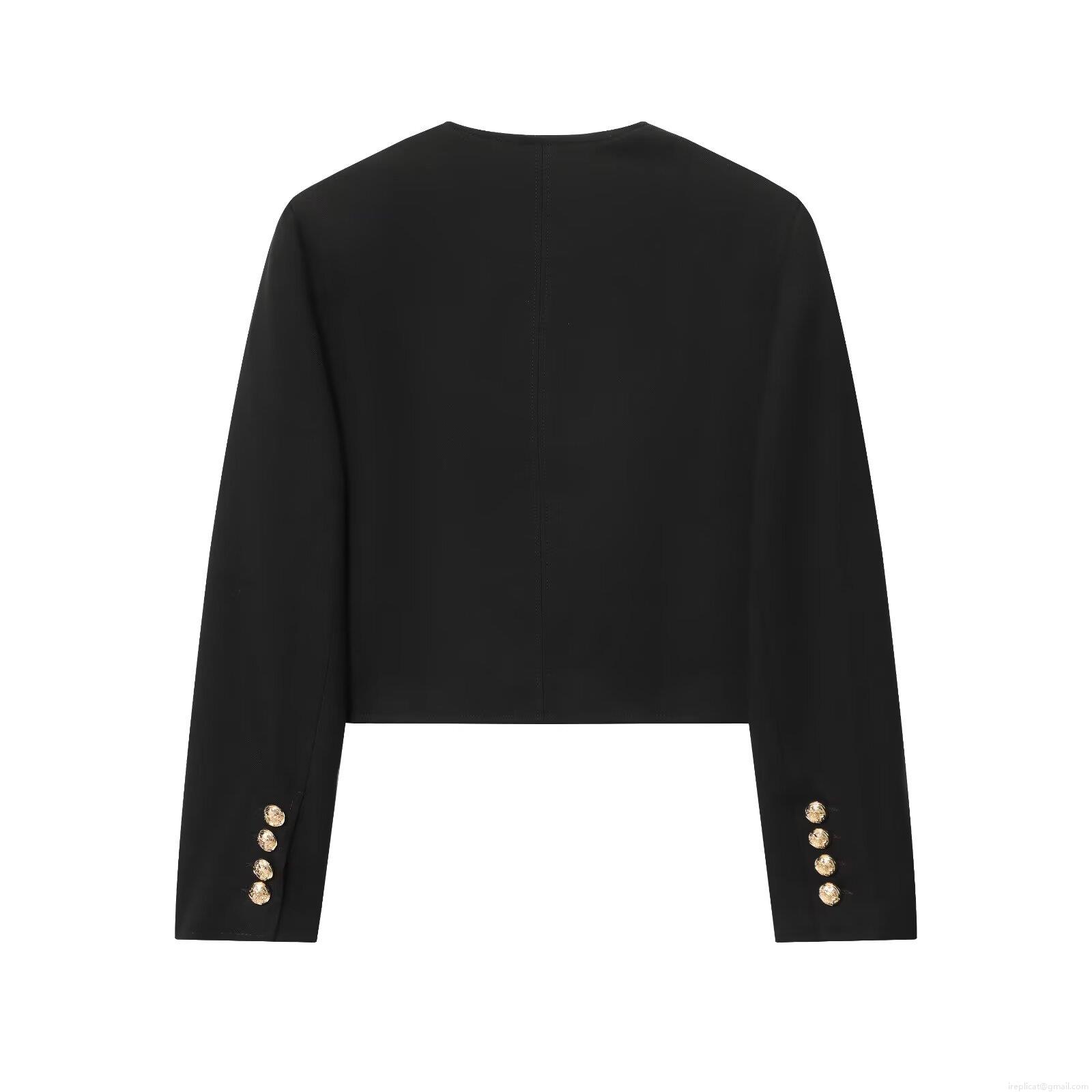 Women's Tweed Style Short Jacket Round Neck Long Sleeve Outerwear With Gold Lion Buttons Polyester Casual Fashion Coat For Women