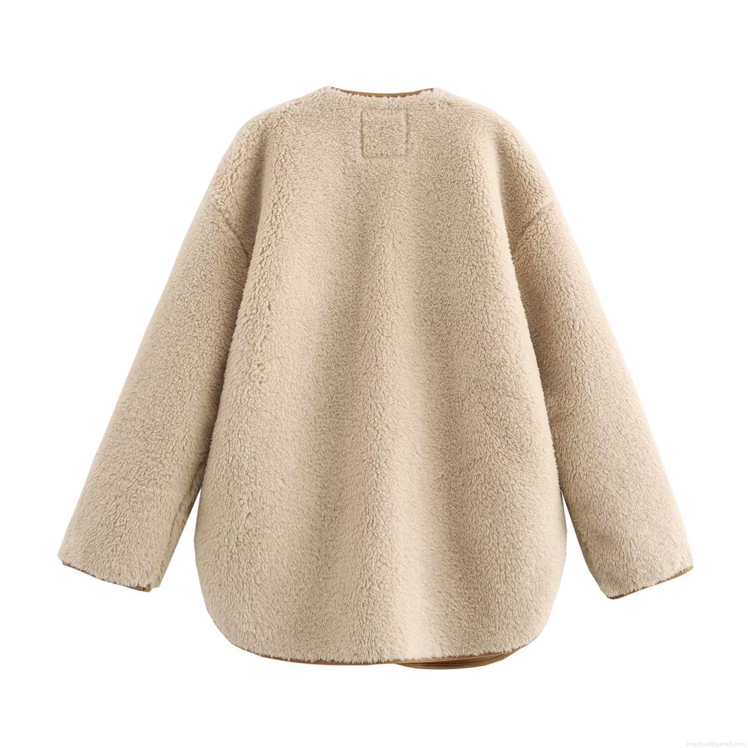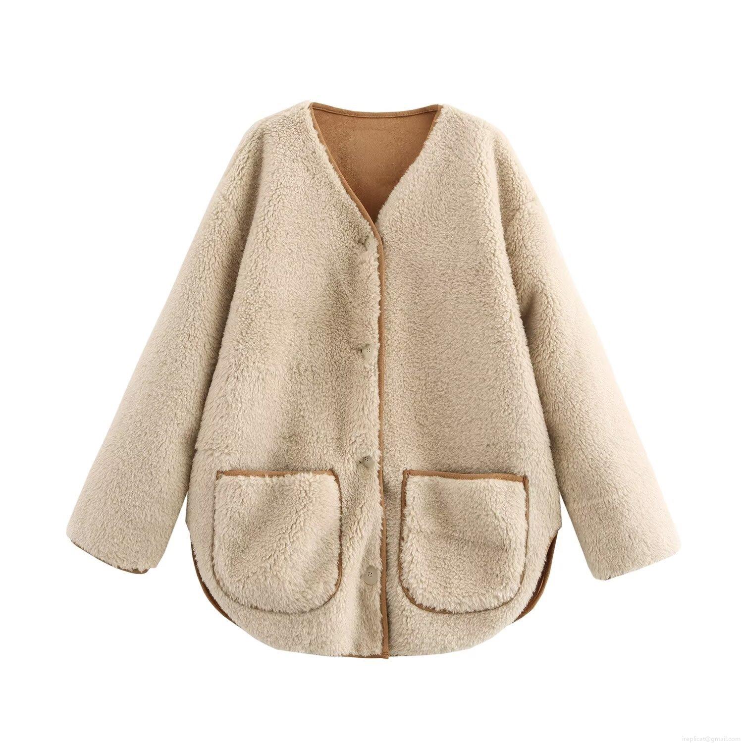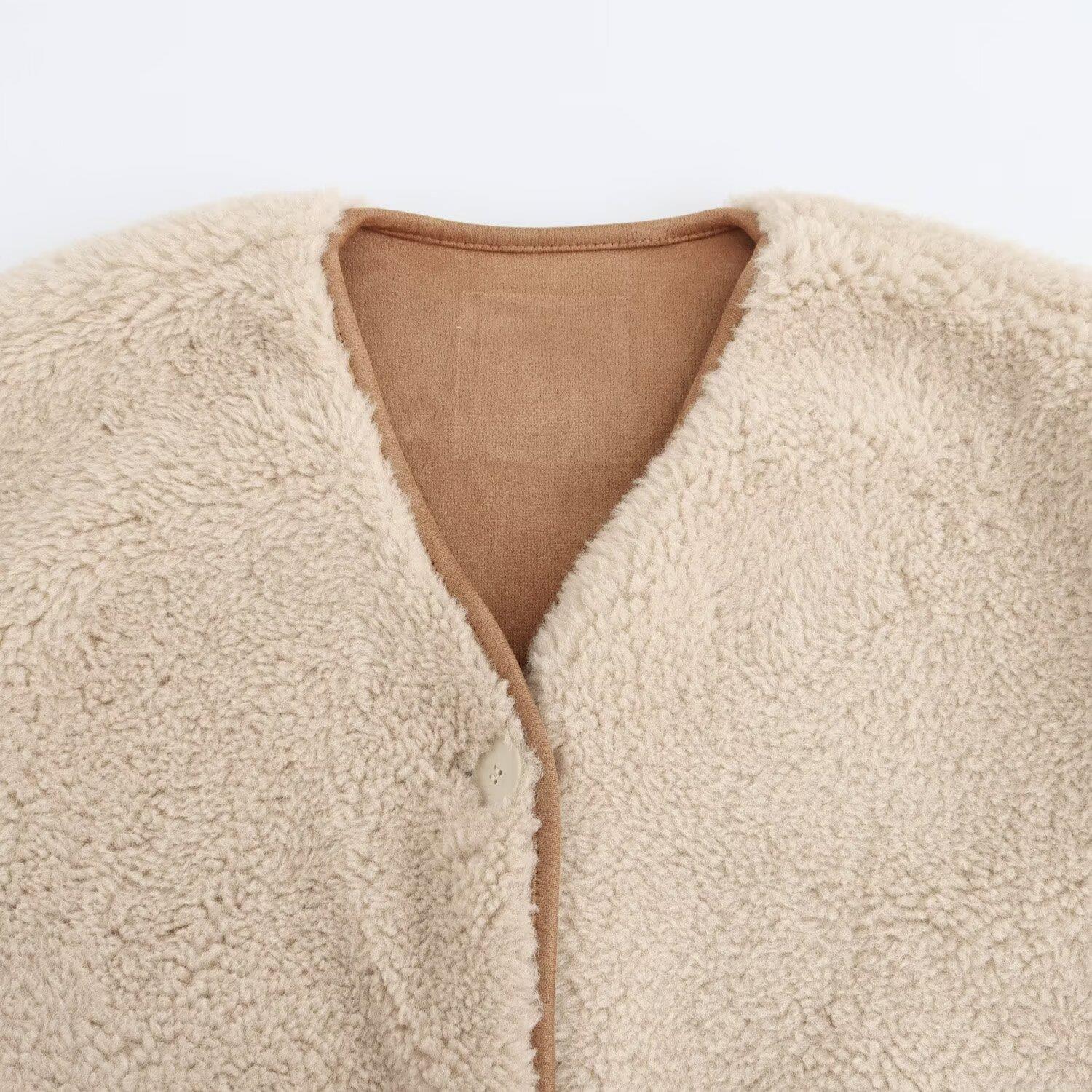 • Women's V Neck Faux Shearling Fleece Jacket Button Down Reversible Sherpa Coat With Contrast Suede Trim Warm Winter Long Sleeve Outerwear Casual Chic